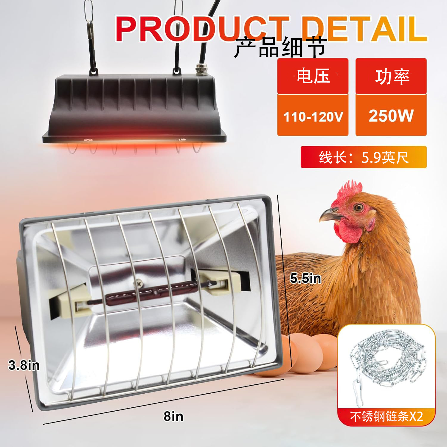 닭장 애완 동물 난방 램프 250W 히터 온도 조절 가능 병아리 새끼 고양이 강아지 및 기타 애완 동물을 위한 온도 조절 가능스토어 가기