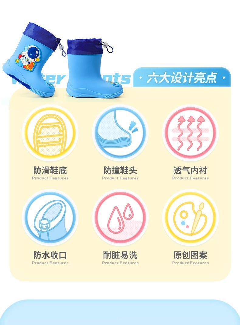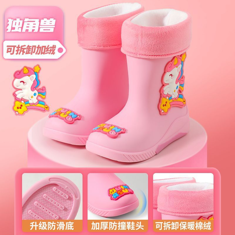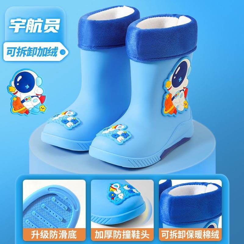 우주 비행사 만화 어린이 장화 아기 유치원 유니콘 장화 플러스 벨벳 겨울 방수 스트링 중간 및 낮은 튜브스토어 가기