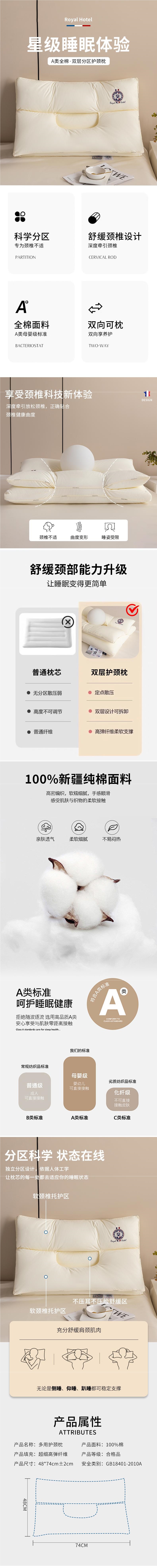 VJE 목 베개 프로 호텔 베개 코어 더블 레이어 분해 베개 무 압력 얼굴 수면 베개 단일 가구