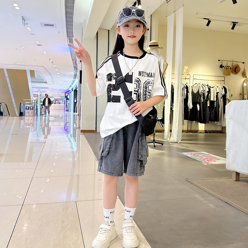 여자 반팔 티셔츠 2025 새로운 여름 유행 여자 미국 문자 인쇄 반팔 느슨한 패션 탑스토어 가기