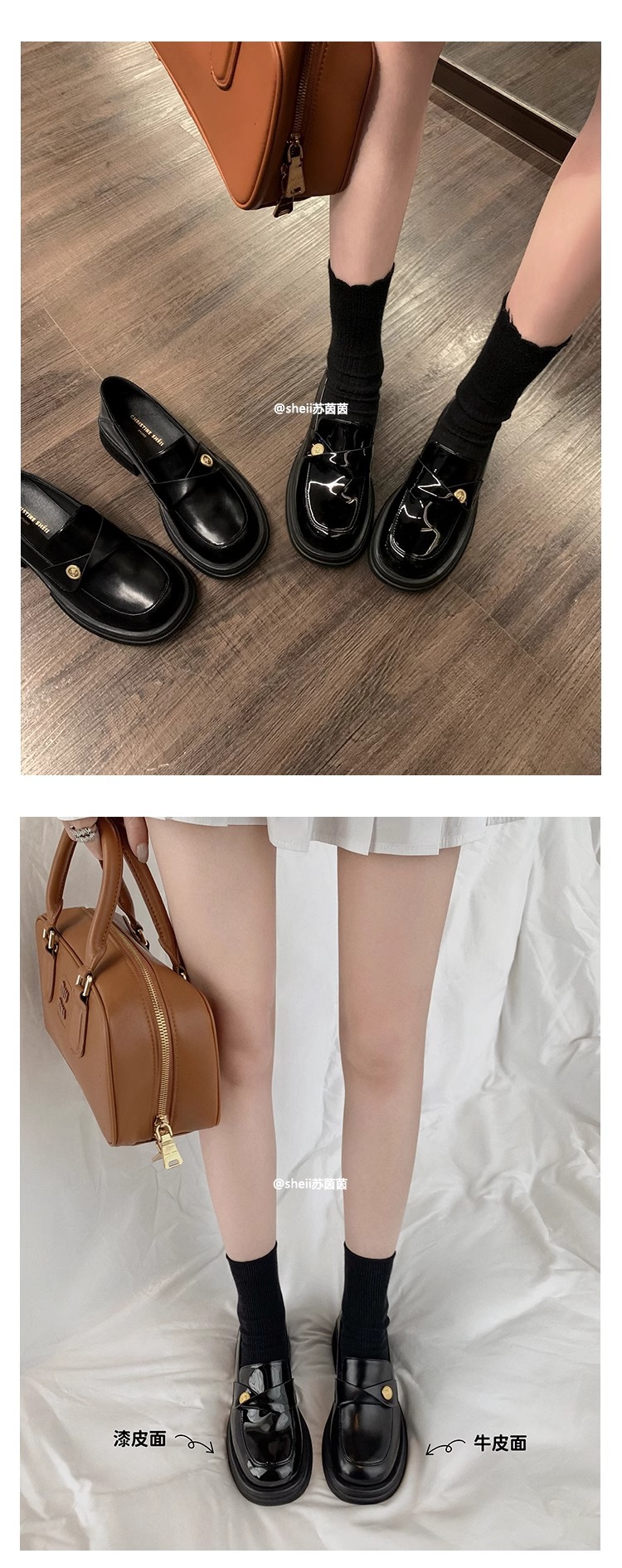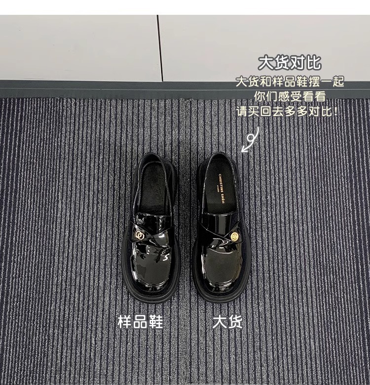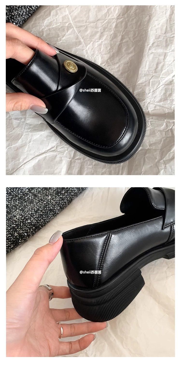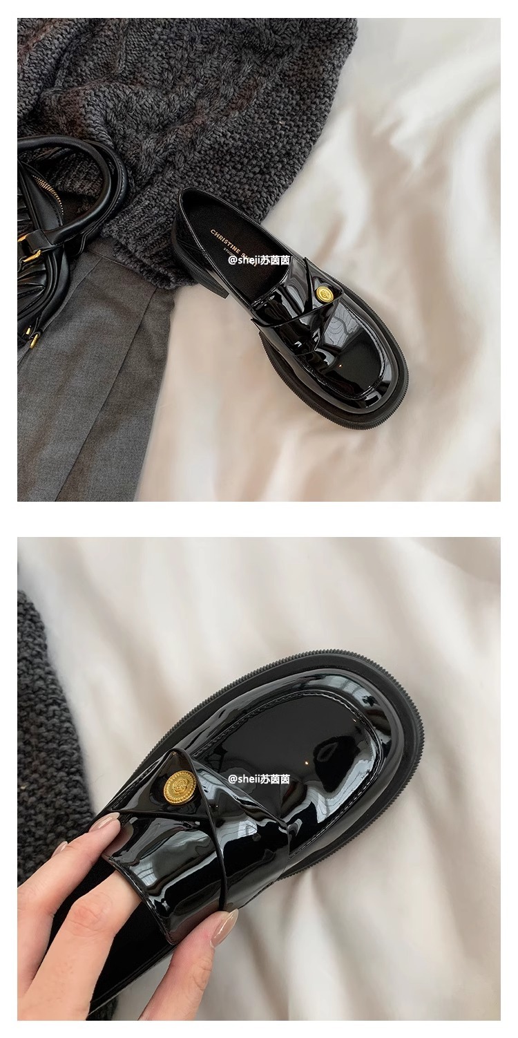 재고 있음 Su Yinyin의 봄, 가을 스타일 복지 특허 가죽 작은 금화 두꺼운 밑창 두꺼운 굽 게으른 로퍼 여성용 작은 가죽 신발