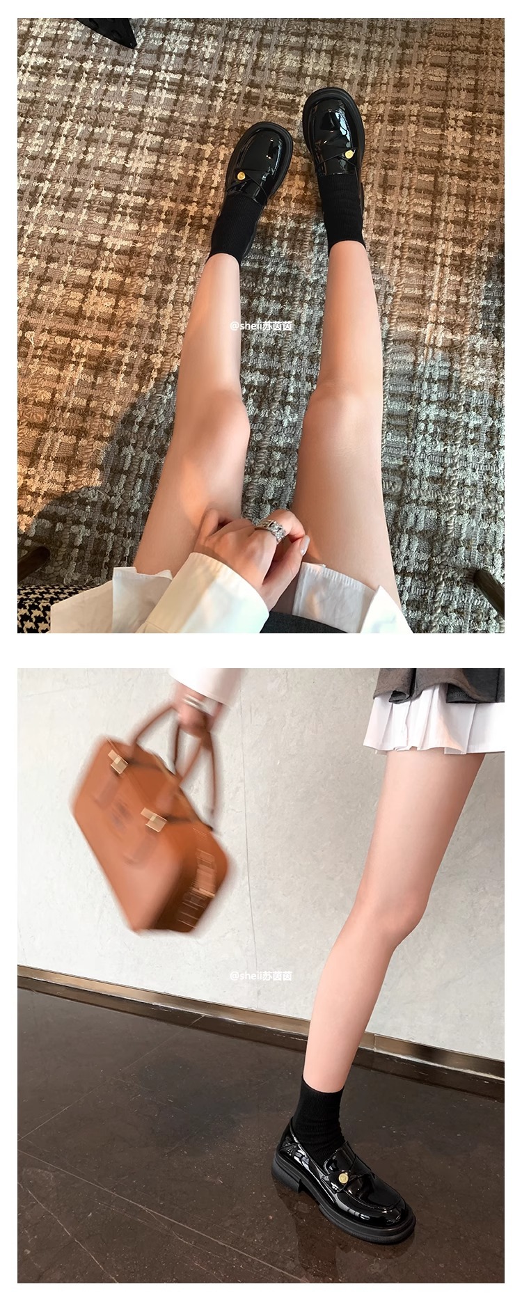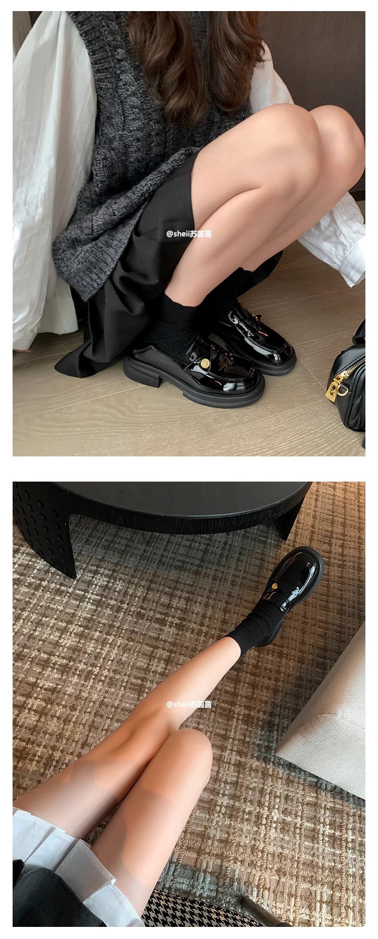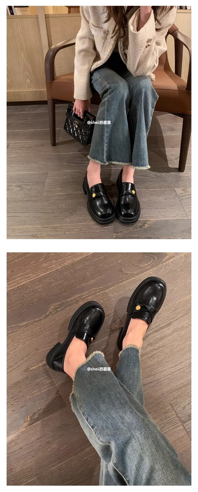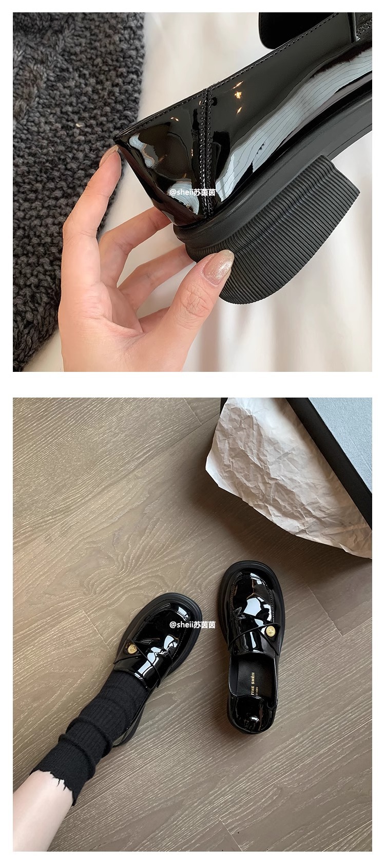 재고 있음 Su Yinyin의 봄, 가을 스타일 복지 특허 가죽 작은 금화 두꺼운 밑창 두꺼운 굽 게으른 로퍼 여성용 작은 가죽 신발