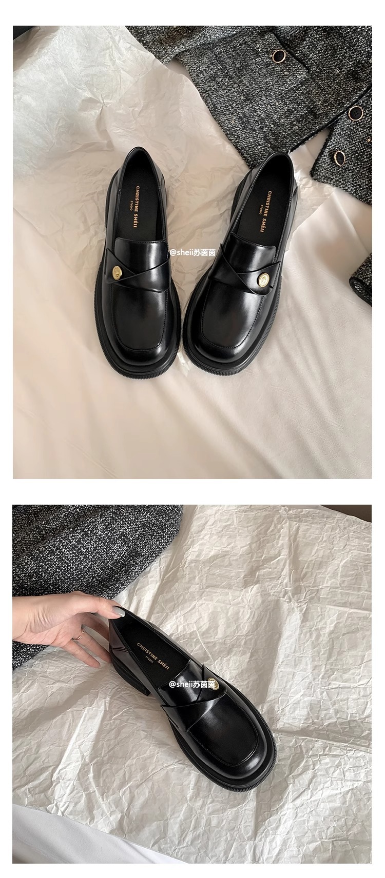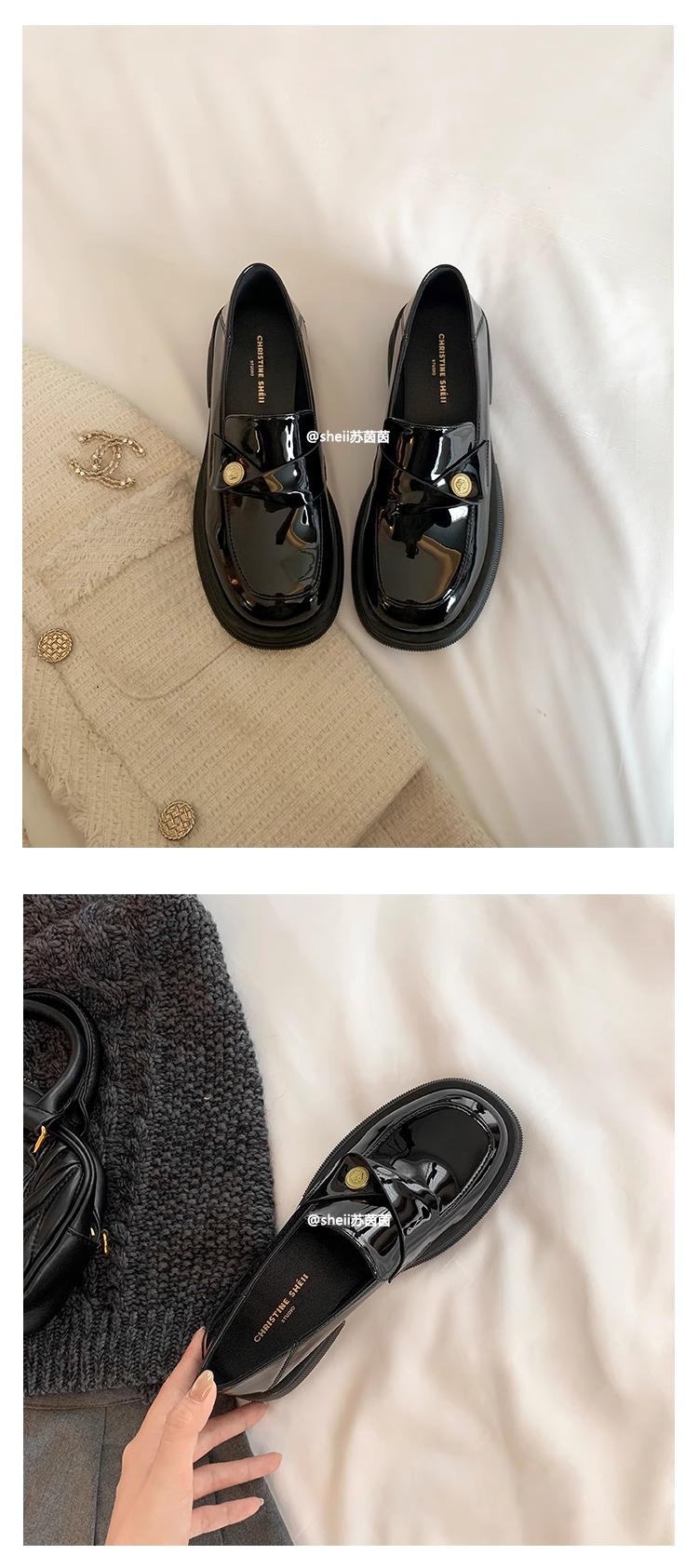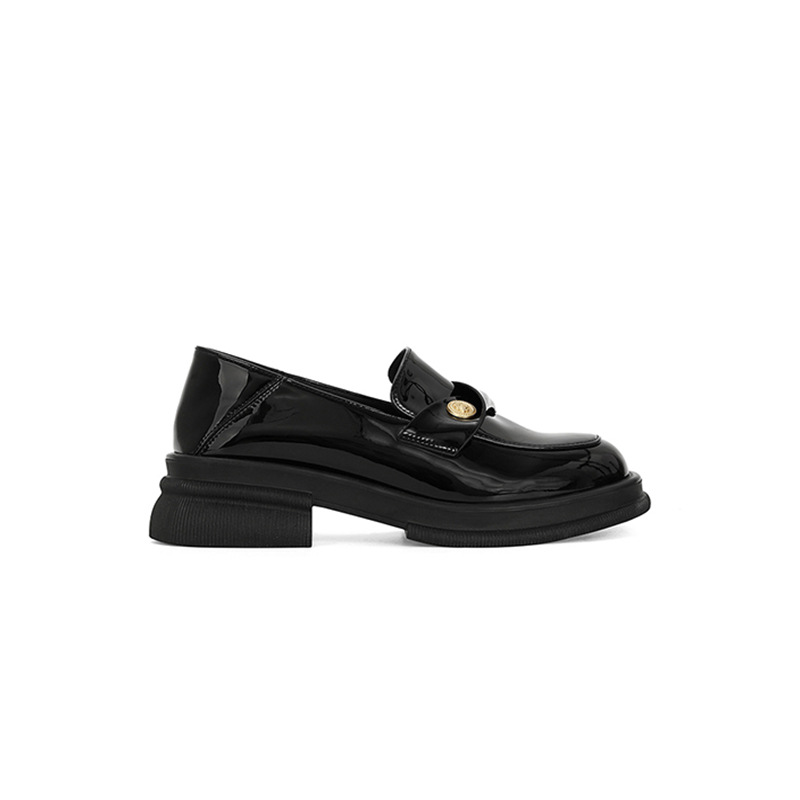 재고 있음 Su Yinyin의 봄, 가을 스타일 복지 특허 가죽 작은 금화 두꺼운 밑창 두꺼운 굽 게으른 로퍼 여성용 작은 가죽 신발스토어 가기
