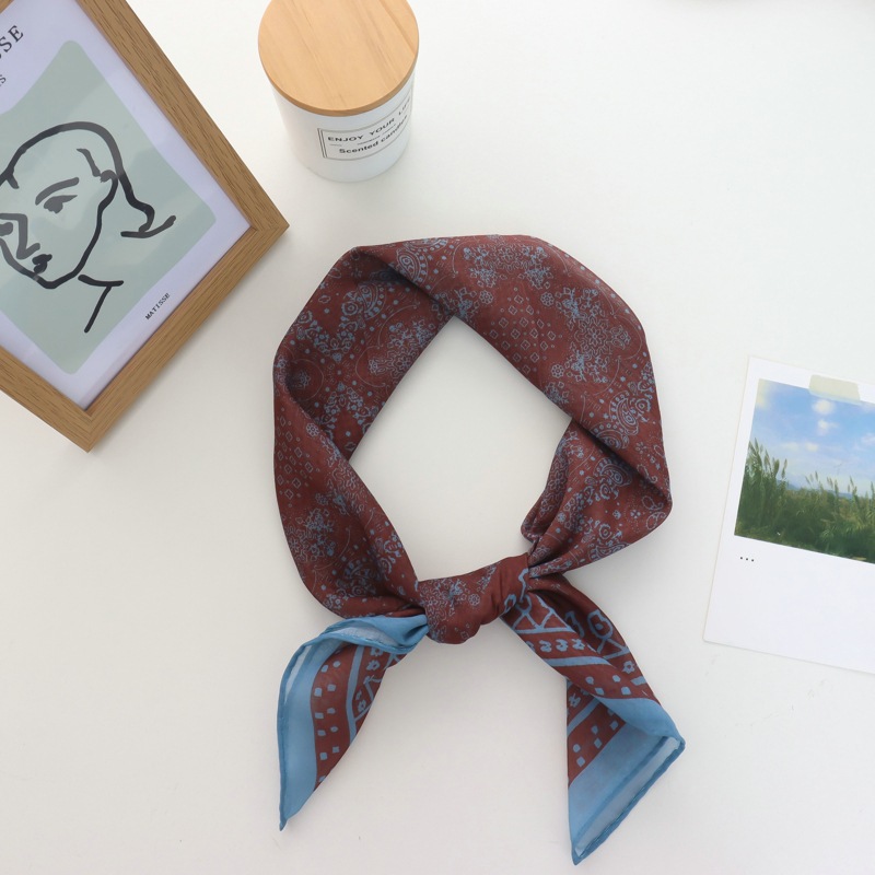레트로 영국 스타일 70 여성용 모조 실크 면 작은 사각형 스카프, 인터넷 연예인 한국어 버전, 트렌디하고 다재다능한 일본 학생 바인딩 리본 스카프