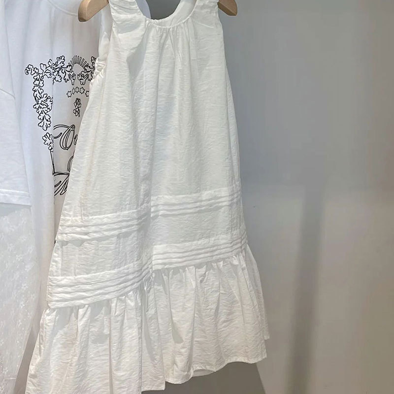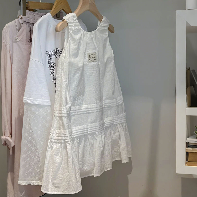 소녀 원피스 어린이 치마 조끼 여름 2025 새로운 슈퍼 잘 생긴 긴 스커트 화이트 인기 트렌디 얇은스토어 가기