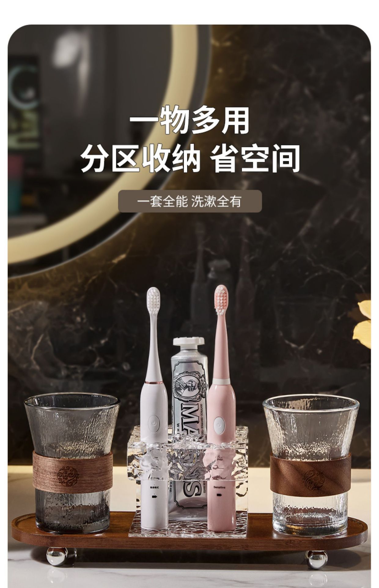 • 호박색+투명+칫솔꽂이+대형 트레이