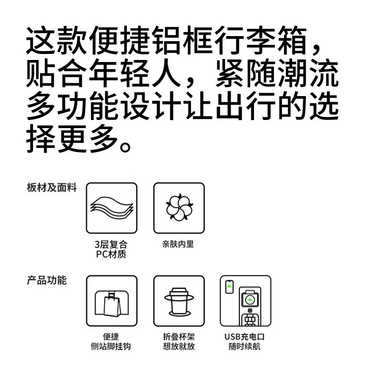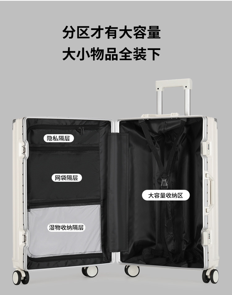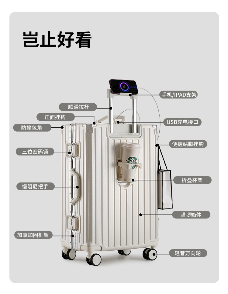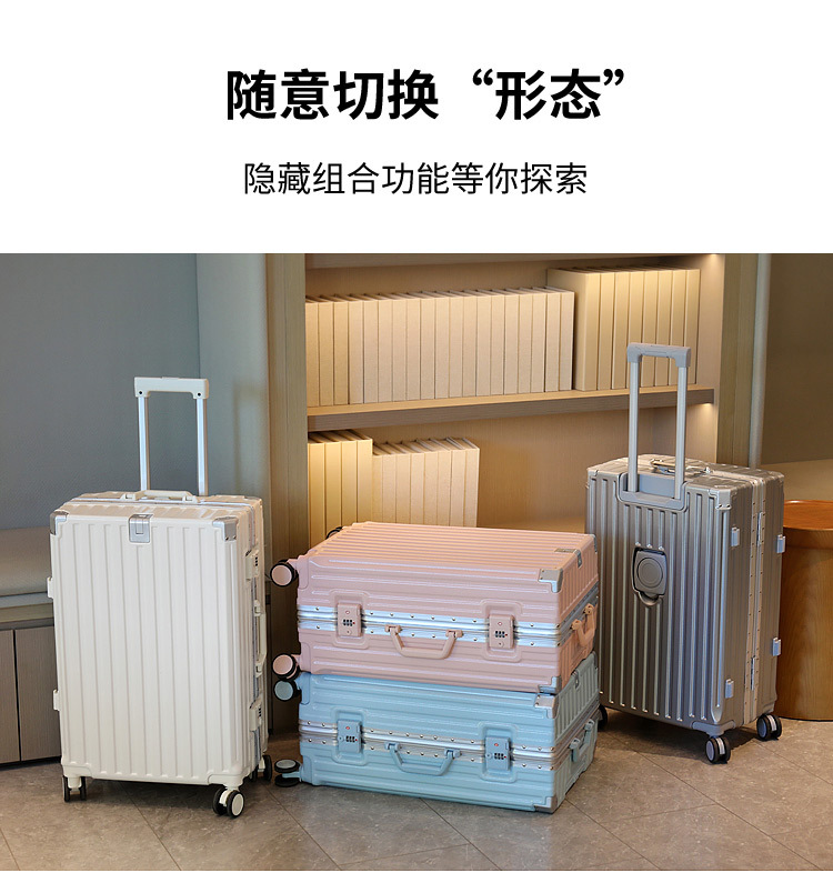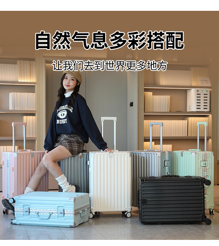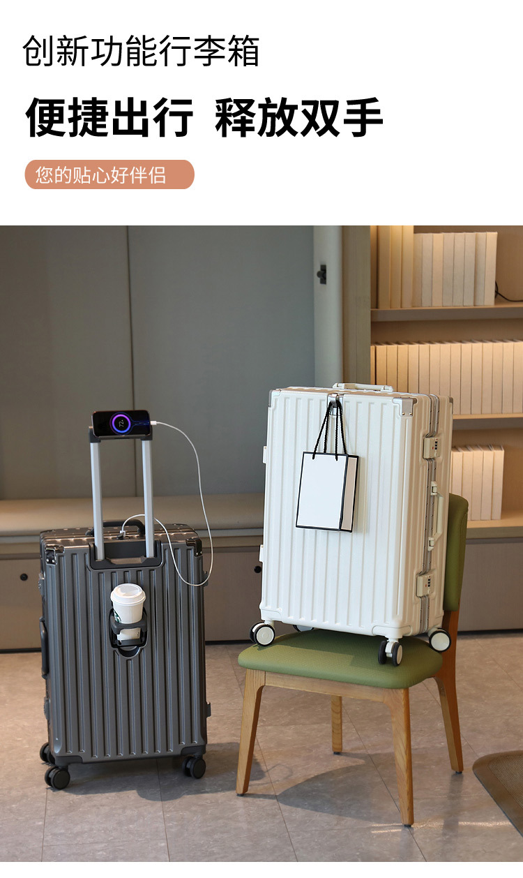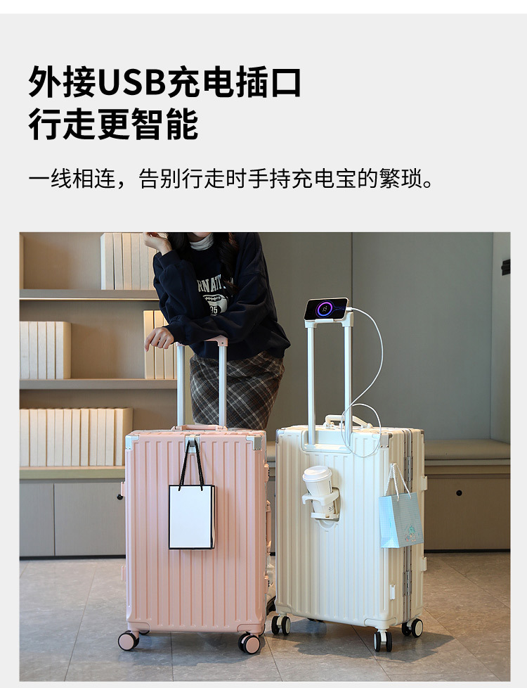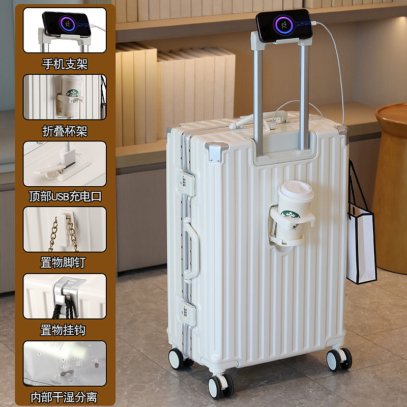 다기능 컵 홀더 가방 트롤리 케이스 여성 20inch 탑승 알루미늄 프레임 충전 대용량 여행 암호 가죽 케이스