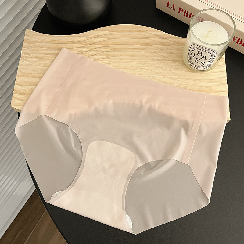 여름 초박형 알몸 우유 가죽 속옷 여성용 롱코튼 크로 치 아이스 실크 쿨 노마크 통기성 여성 브리프