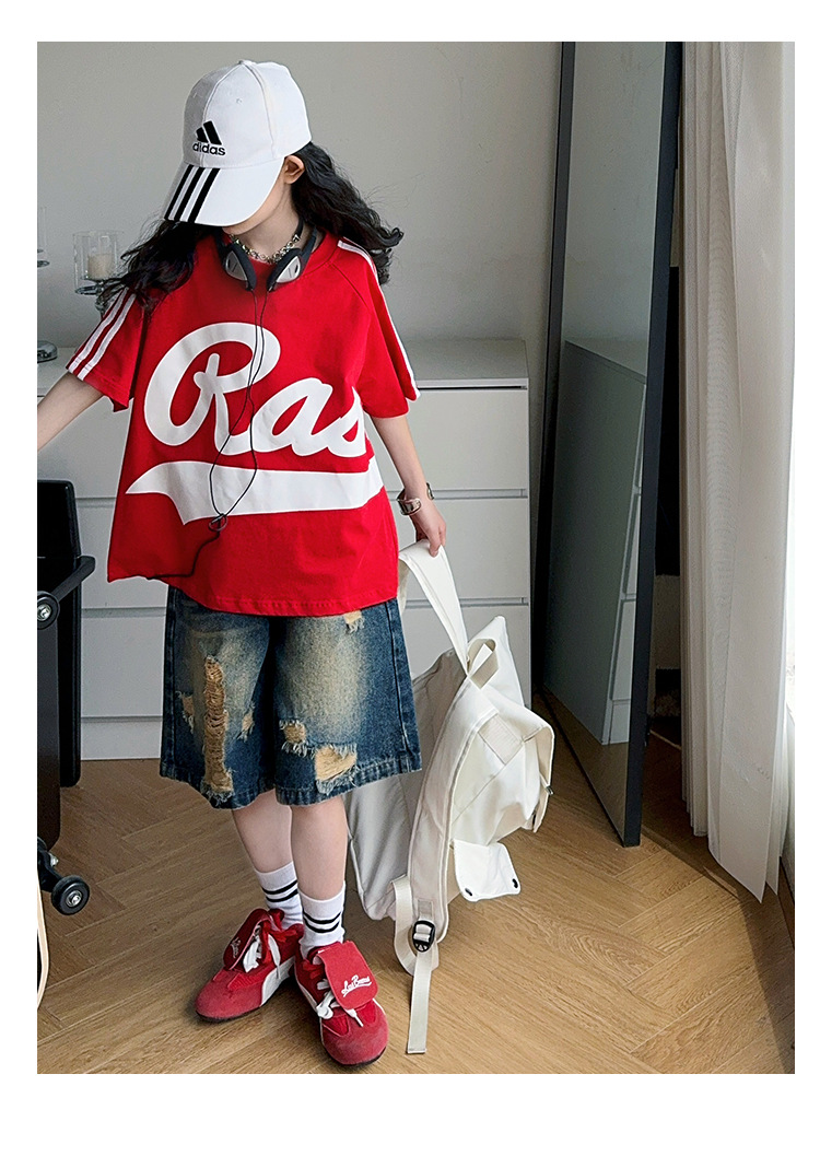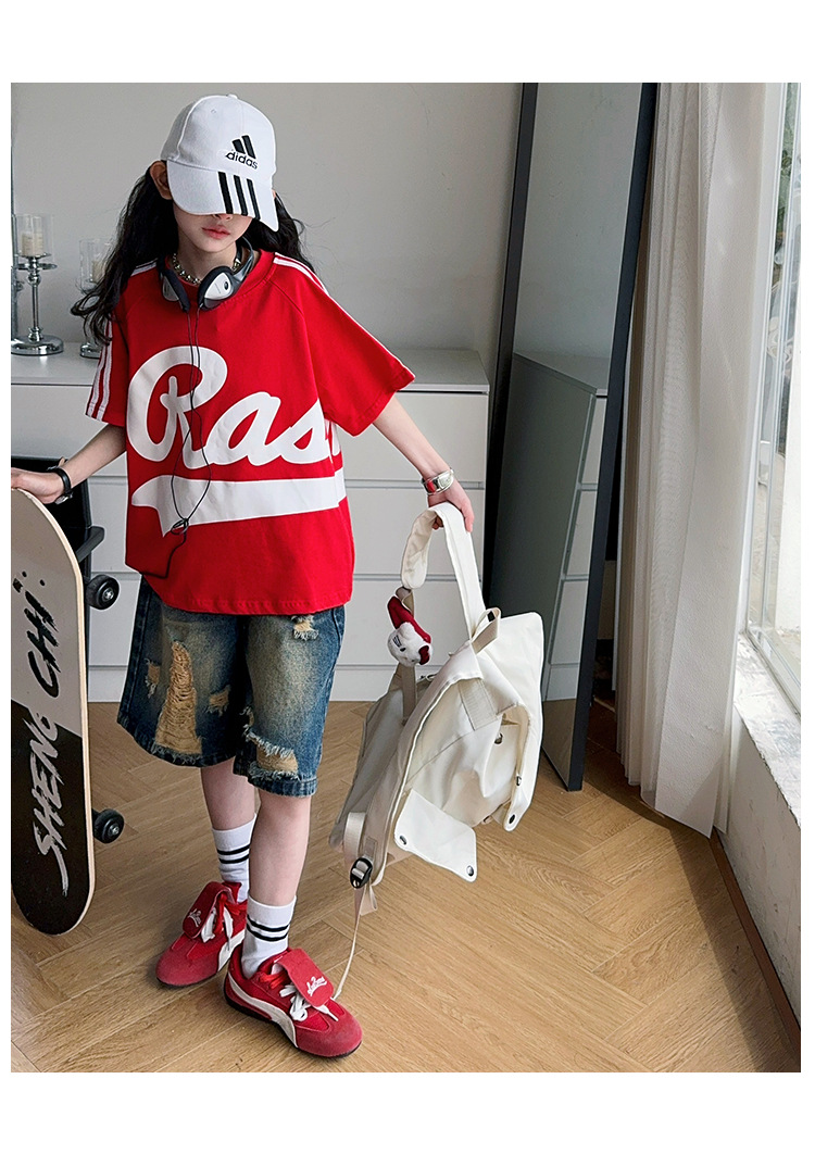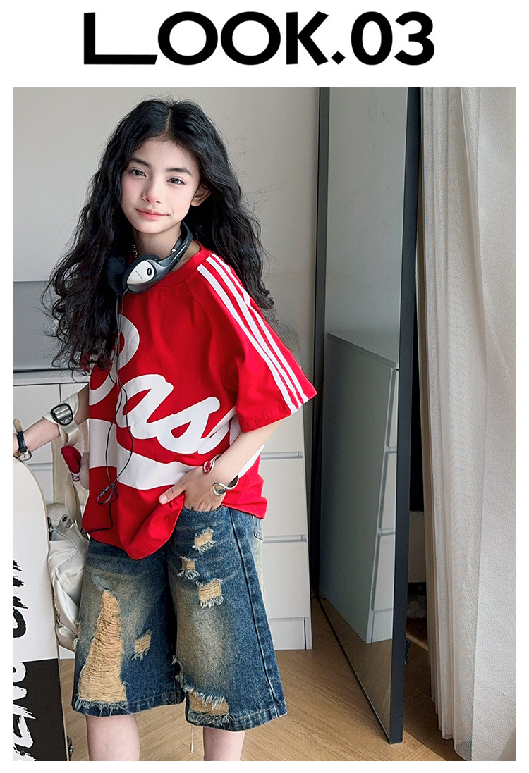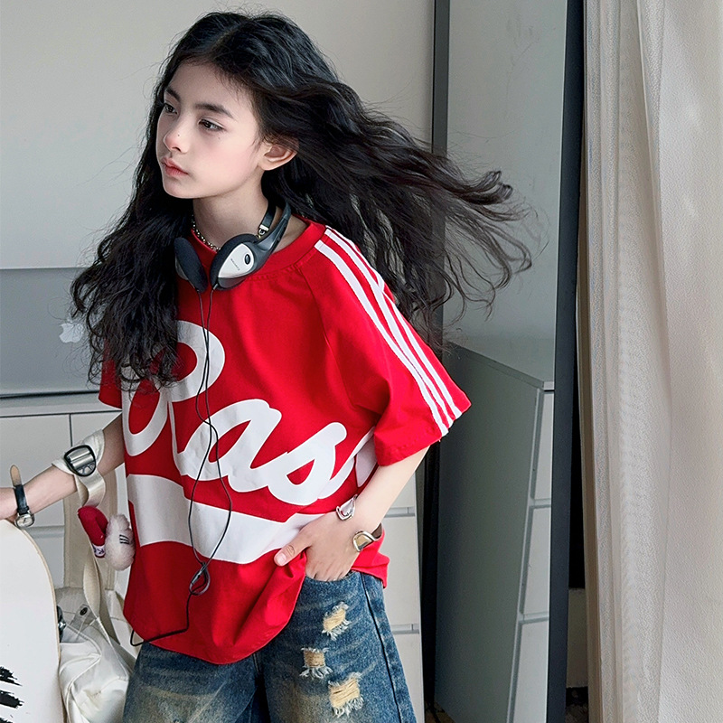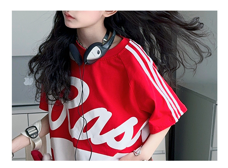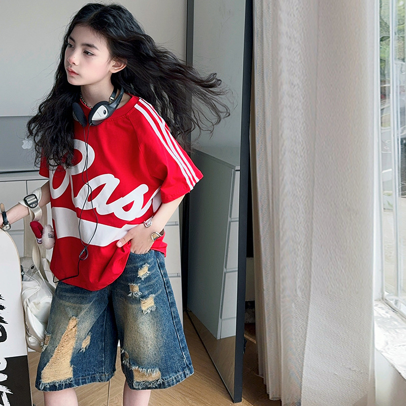 소녀 여름 세트 2025 새로운 어린이 세련된 반팔 티셔츠 소녀 느슨한 반바지 투피스 유행 세트스토어 가기
