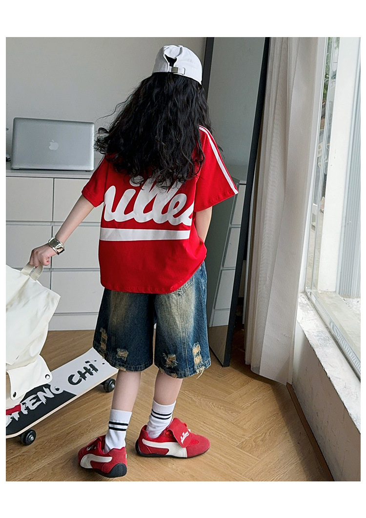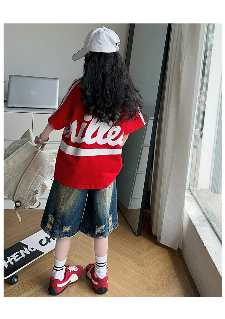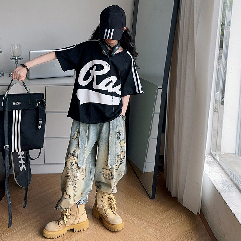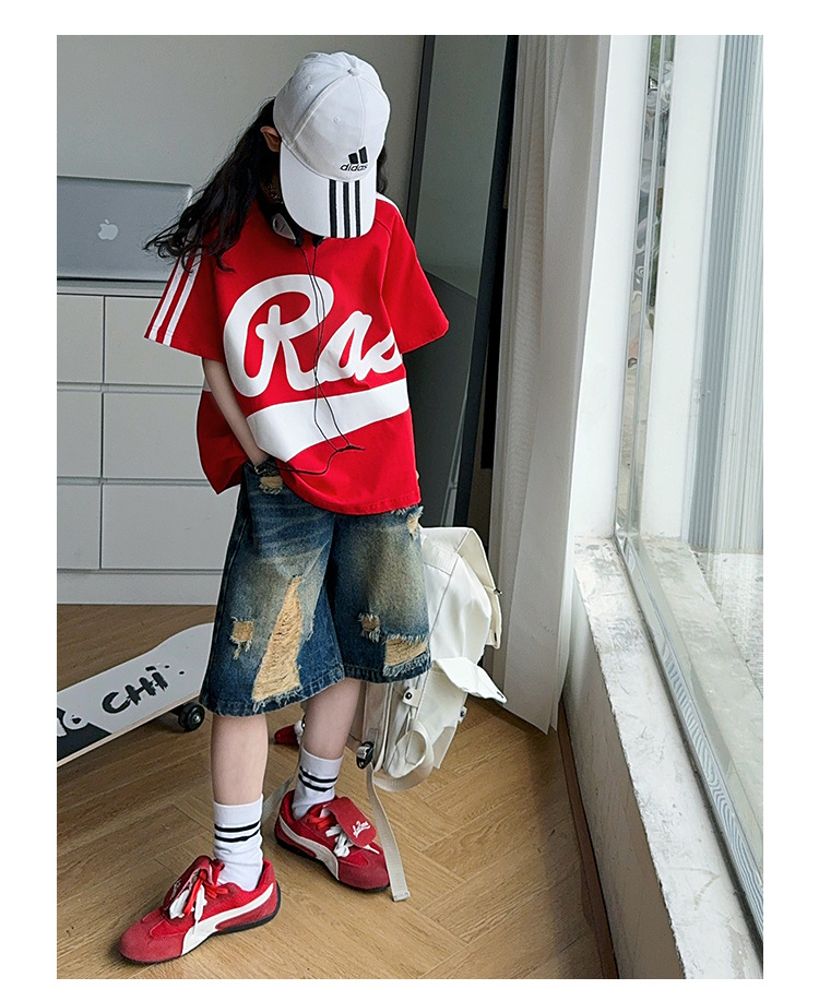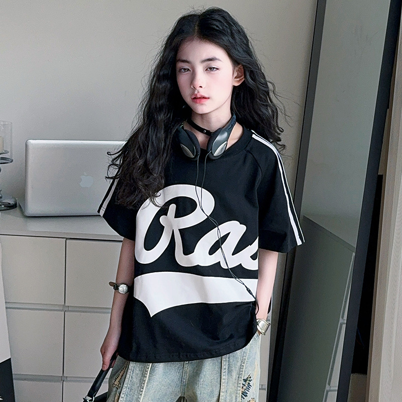 소녀 여름 세트 2025 새로운 어린이 세련된 반팔 티셔츠 소녀 느슨한 반바지 투피스 유행 세트스토어 가기