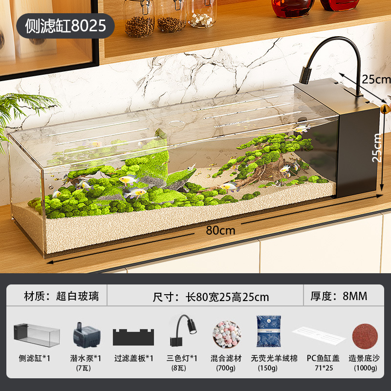 초백색 유리 수조 2025 새로운 스트림 탱크 생태 조경 데스크탑 탱크 거실 특수 금붕어 탱크 남미 탱크