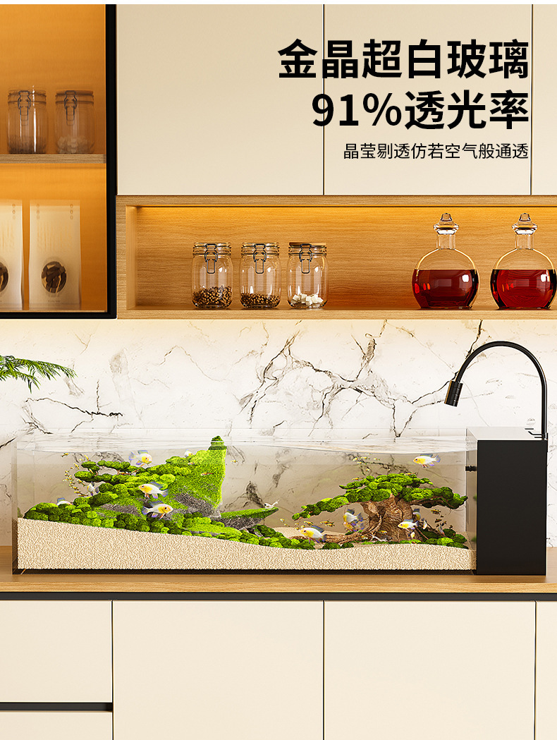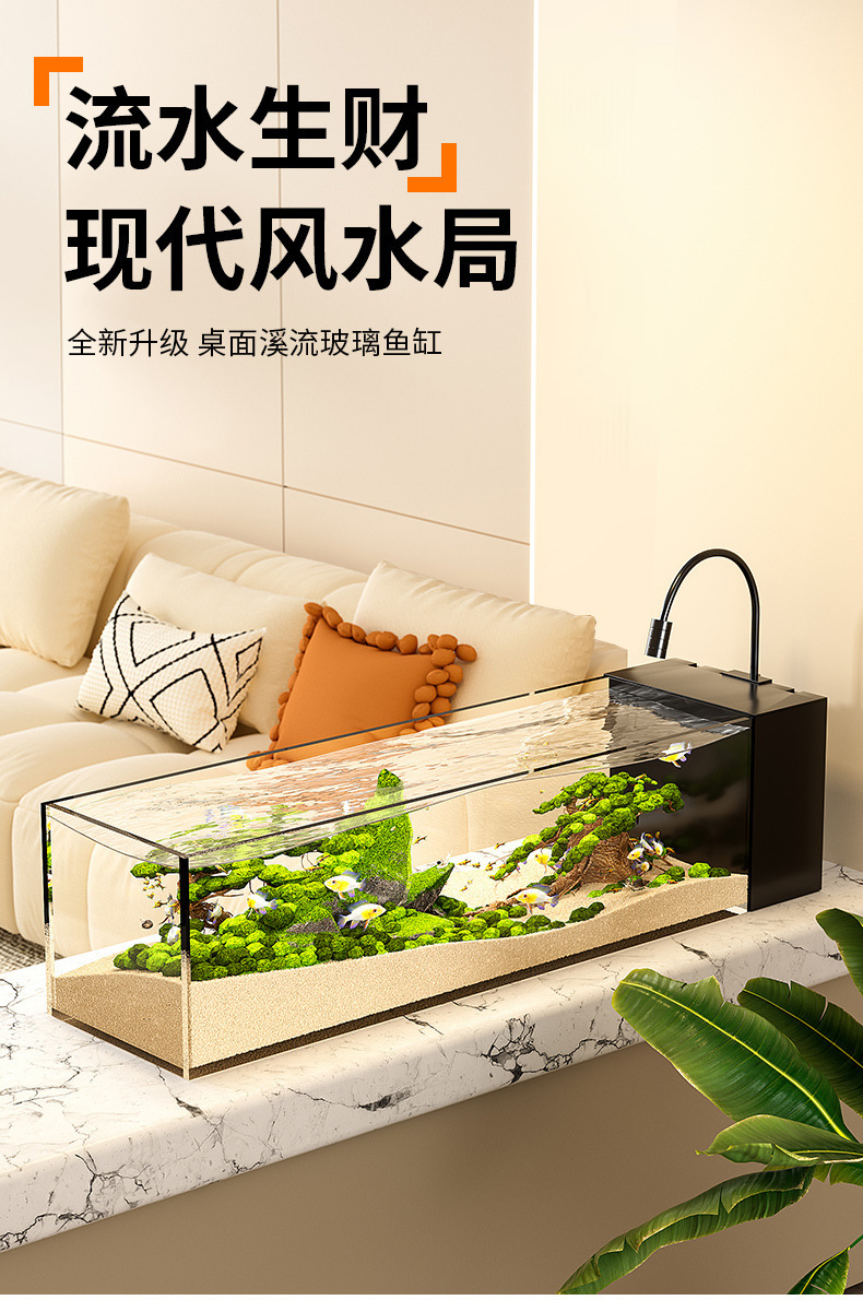 초백색 유리 수조 2025 새로운 스트림 탱크 생태 조경 데스크탑 탱크 거실 특수 금붕어 탱크 남미 탱크스토어 가기