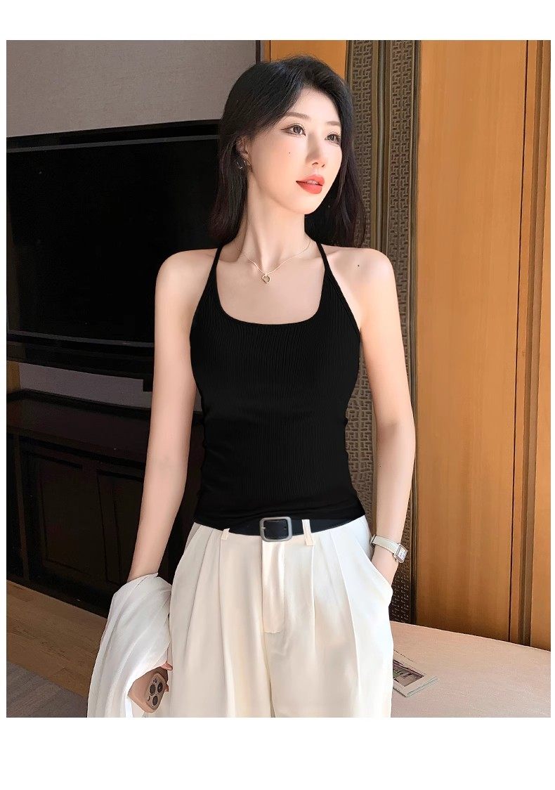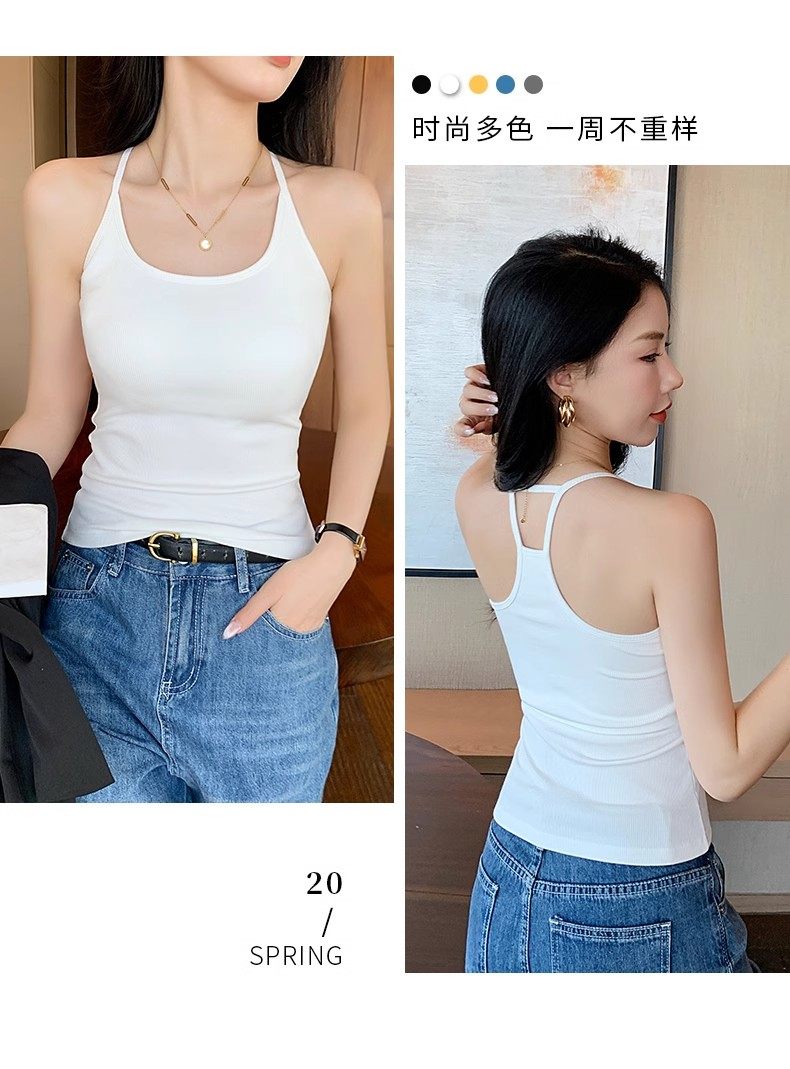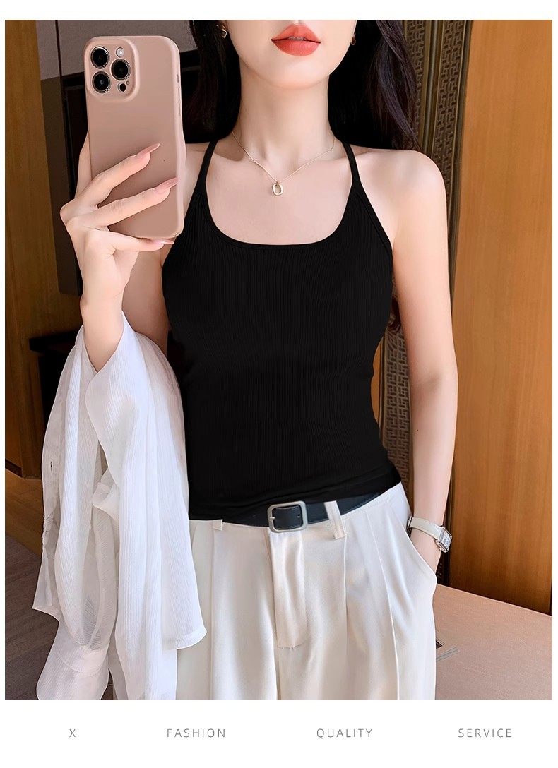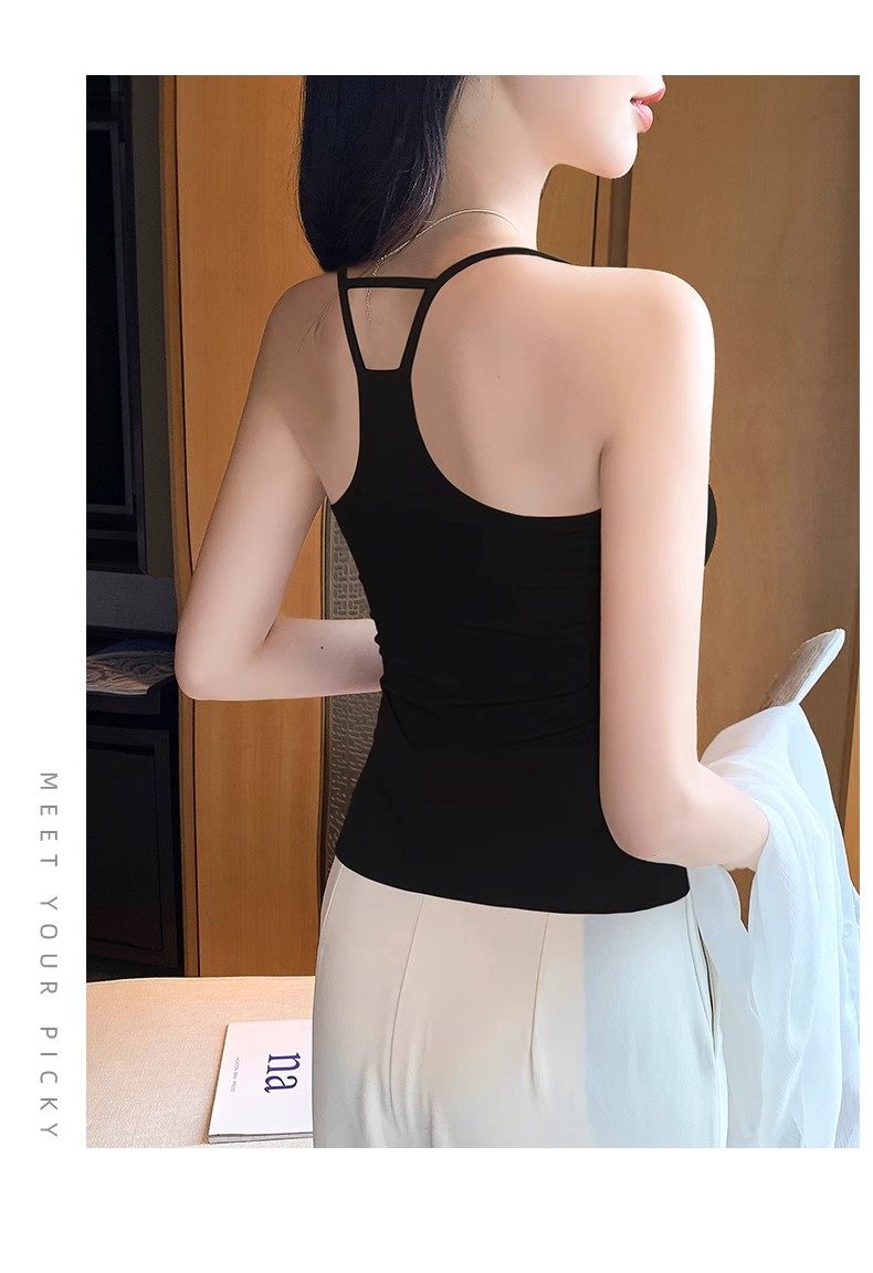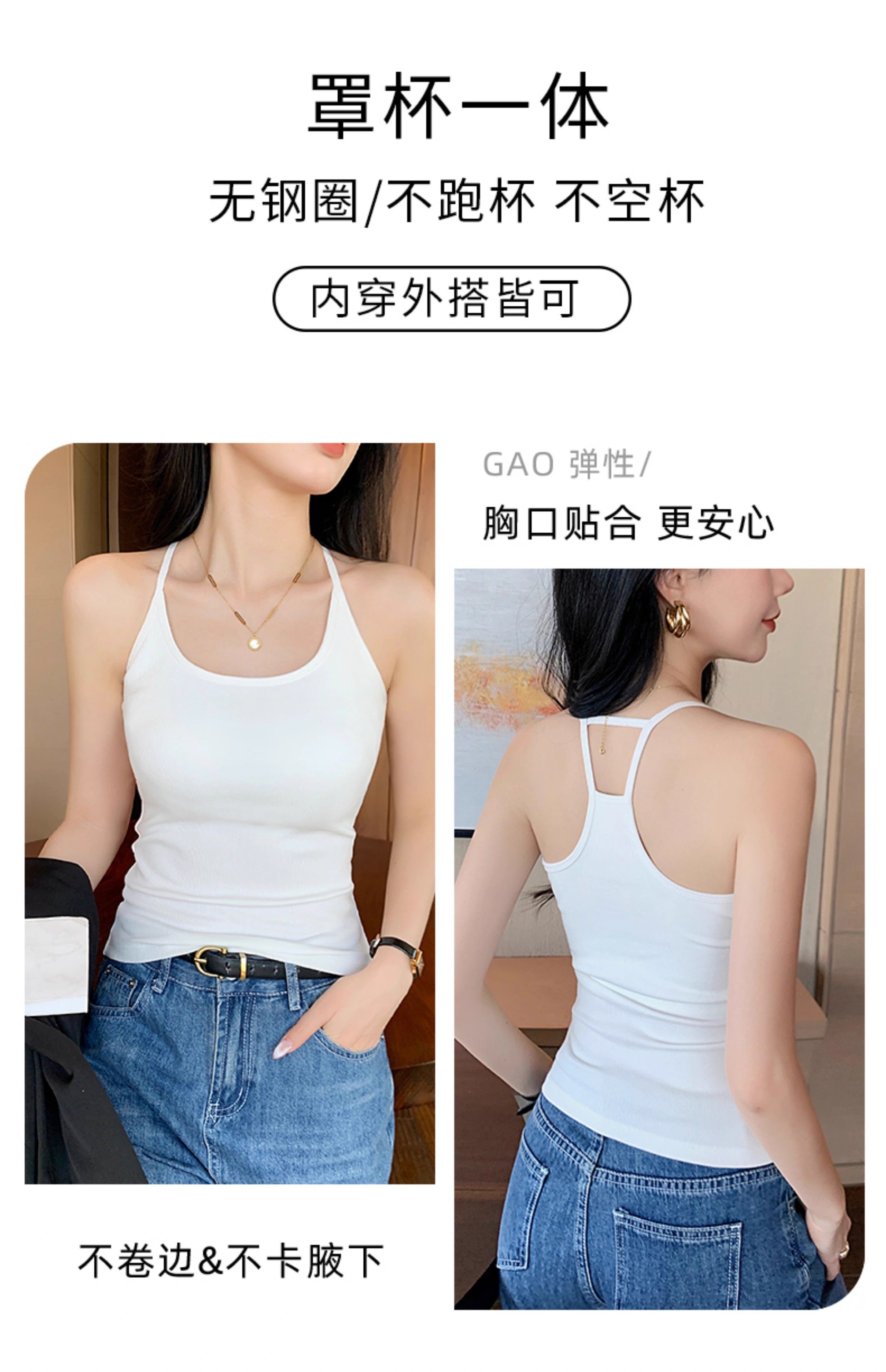 여성용 아름다운 백 캐미솔 2025 새로운 스타일의 스포츠 베이스 레이어 흰색 이너 탑(가슴 패드 포함)스토어 가기