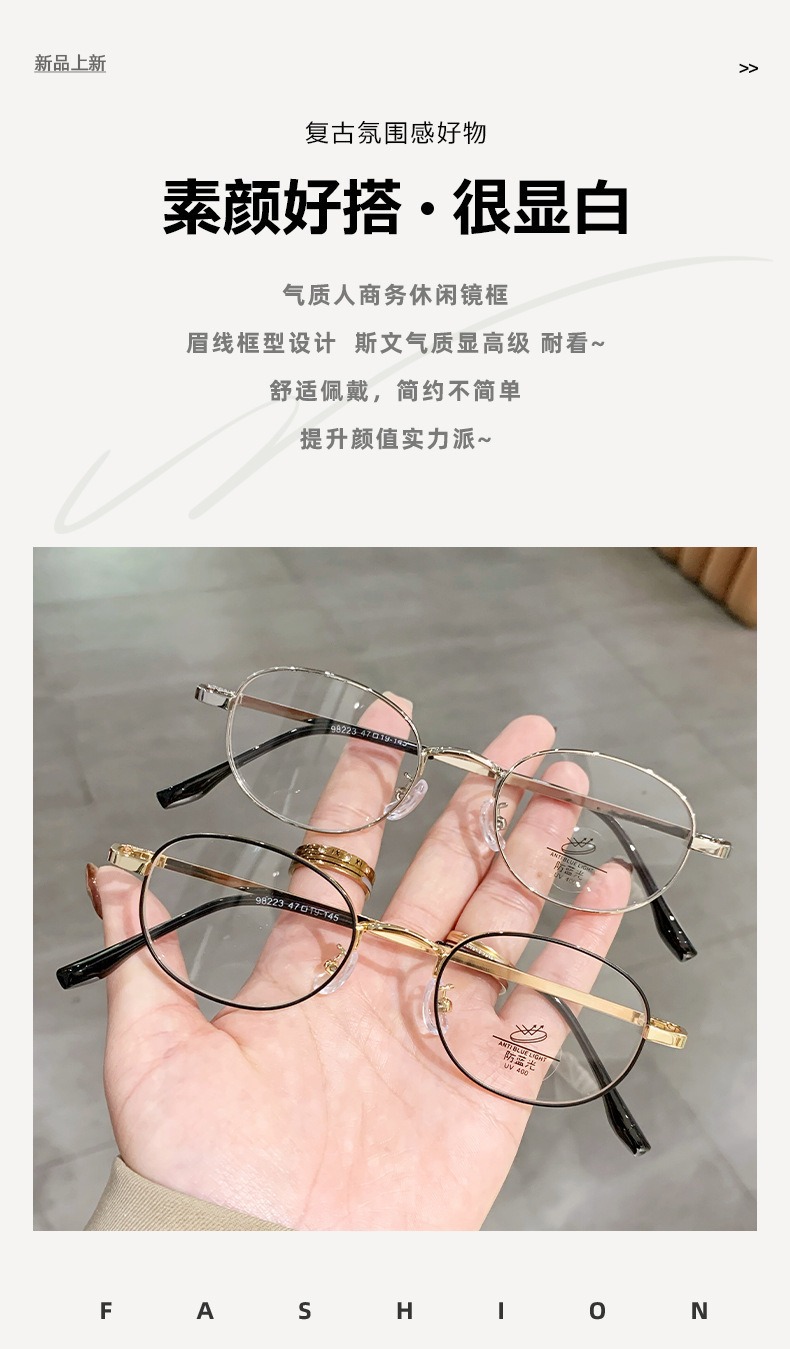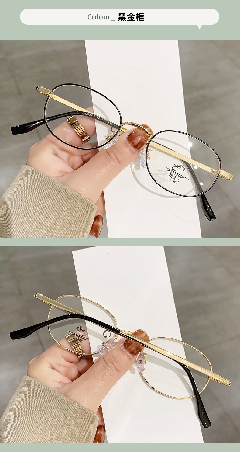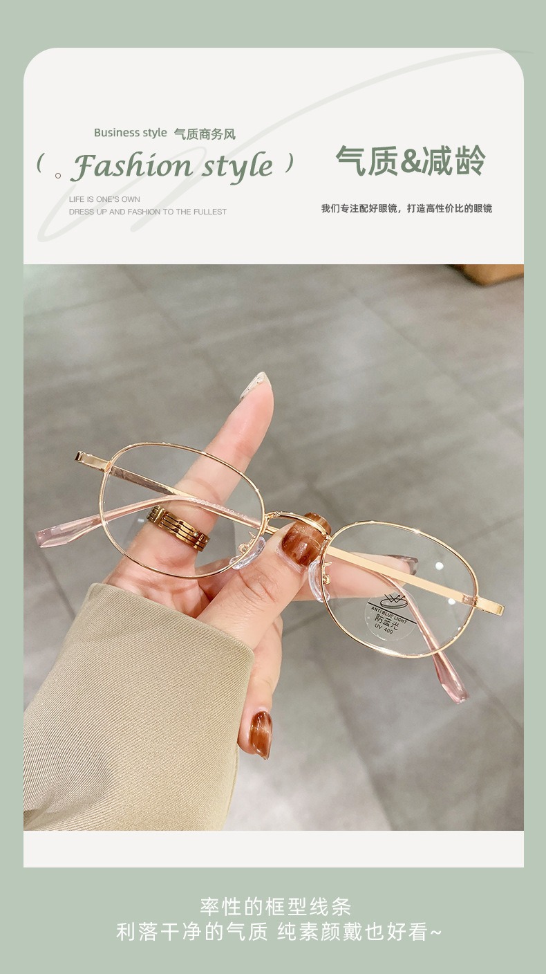 Liu Yifei와 같은 스타일의 금테 안경 Xiaohongshu ins 문학적 블루라이트 방지 평면 안경은 근시 정도와 일치할 수 있습니다.