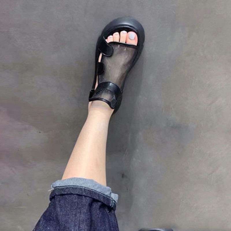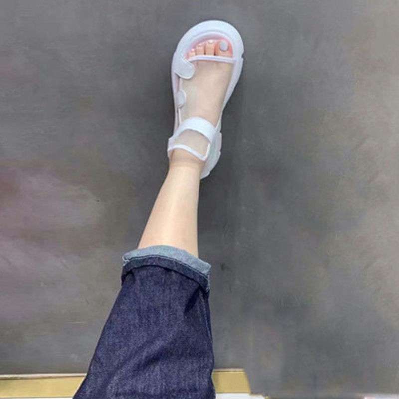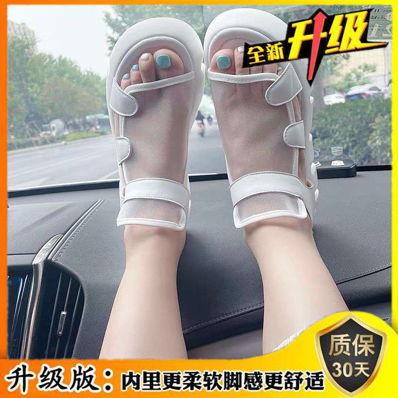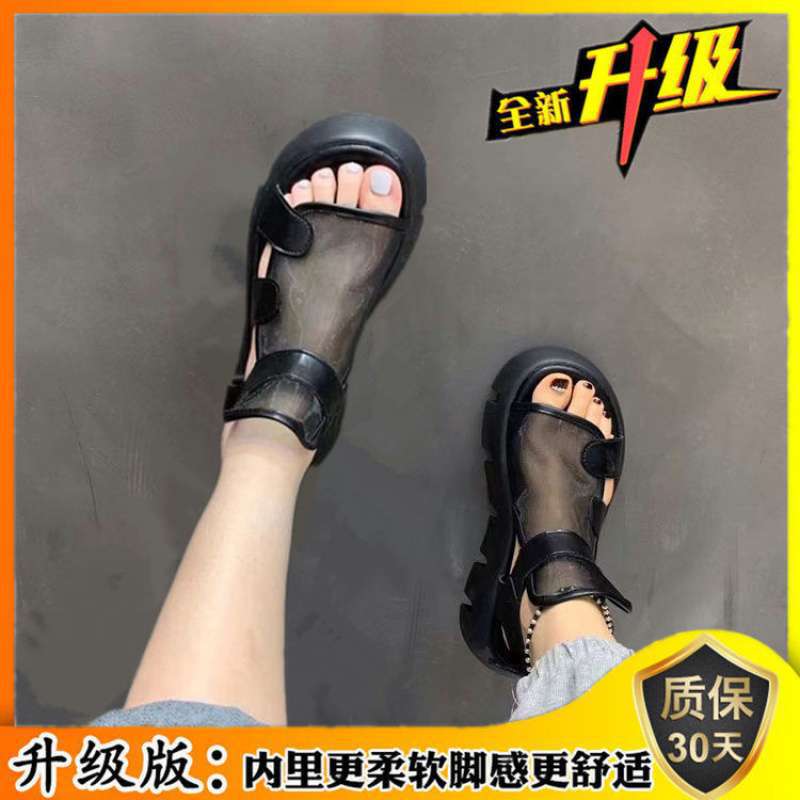 여성을위한 유럽 플랫폼 샌들 2025 여름 새로운 패션 두꺼운 밑창 통기성 유럽 메쉬 벨크로 로마 샌들스토어 가기