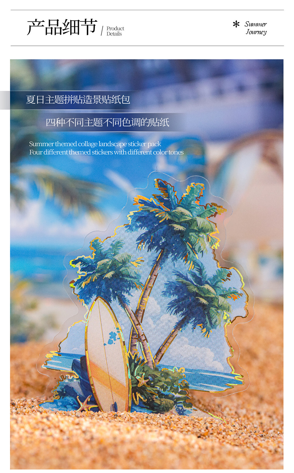 미스터 종이 브론징 큰 스티커 가방 여름 여행 해변 휴가 테마 소녀 손 계정 콜라주 자료