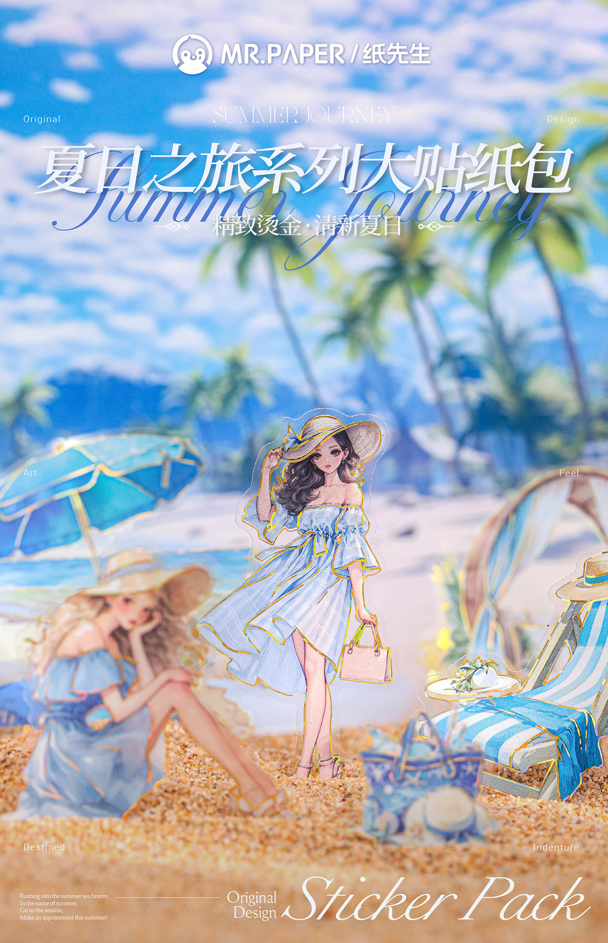미스터 종이 브론징 큰 스티커 가방 여름 여행 해변 휴가 테마 소녀 손 계정 콜라주 자료스토어 가기