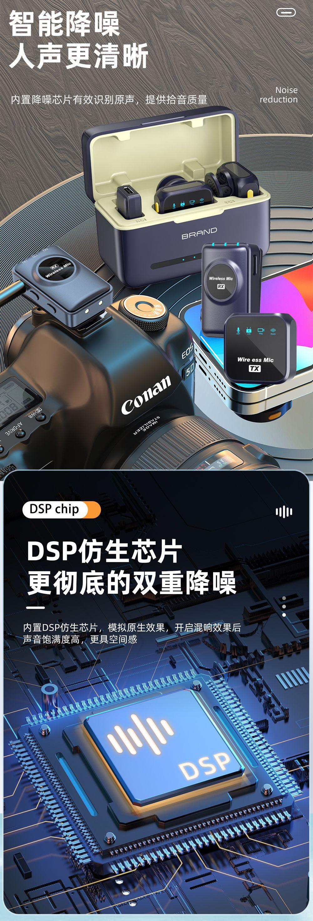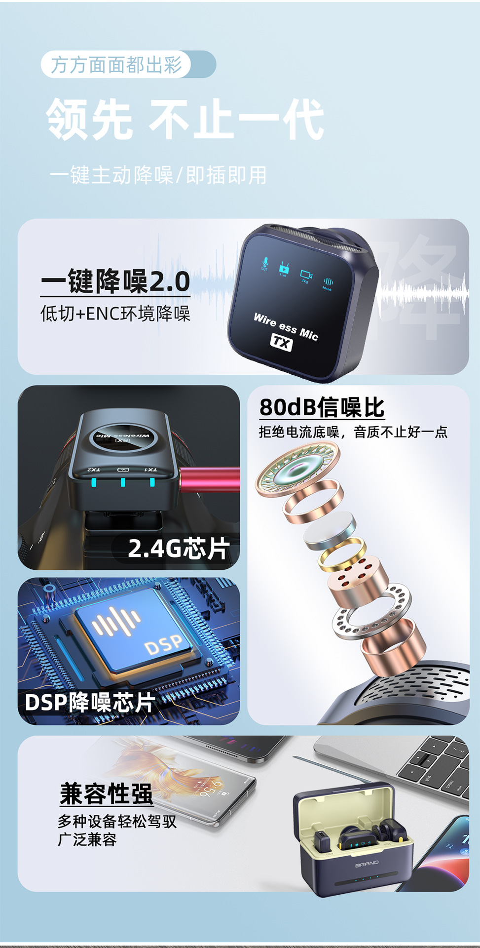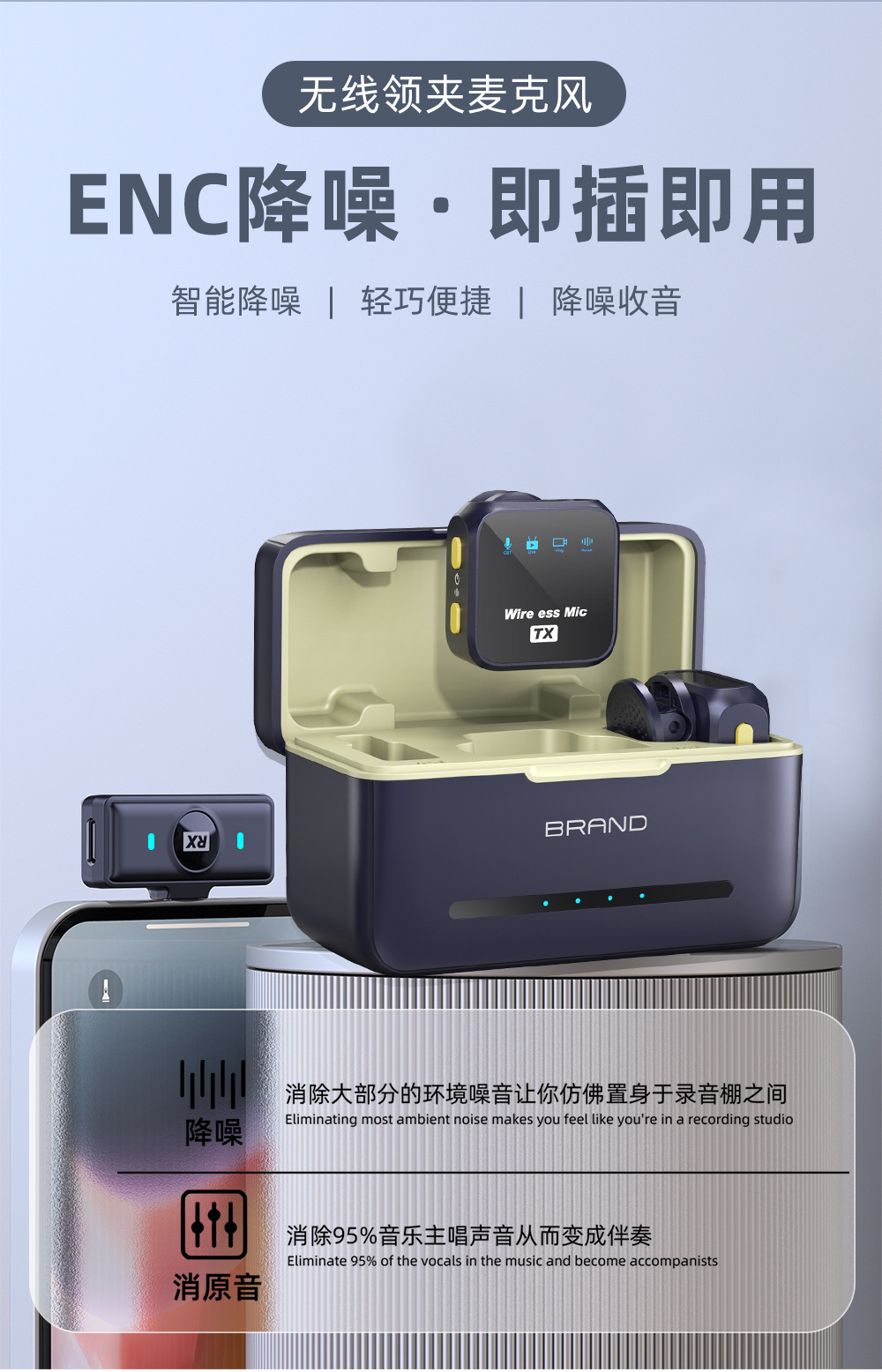 새로운 DX12 1-2 무선 Laike 마이크 야외 라이브 지능형 소음 감소 라디오 클램프 무선 마이크