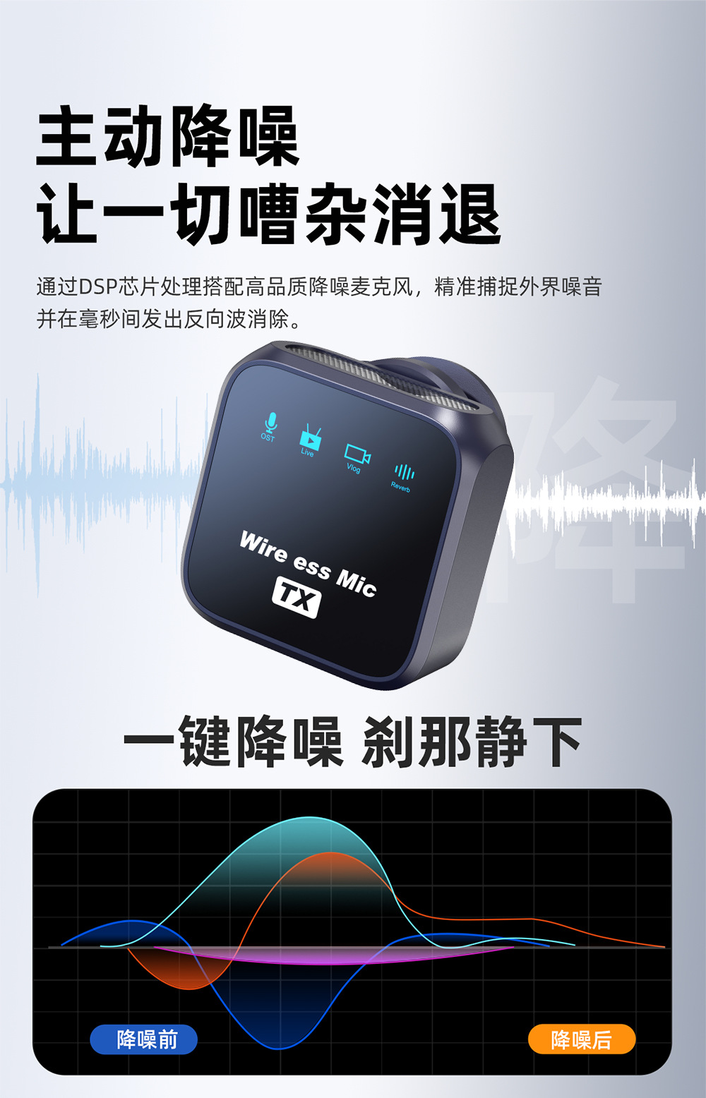 새로운 DX12 1-2 무선 Laike 마이크 야외 라이브 지능형 소음 감소 라디오 클램프 무선 마이크스토어 가기