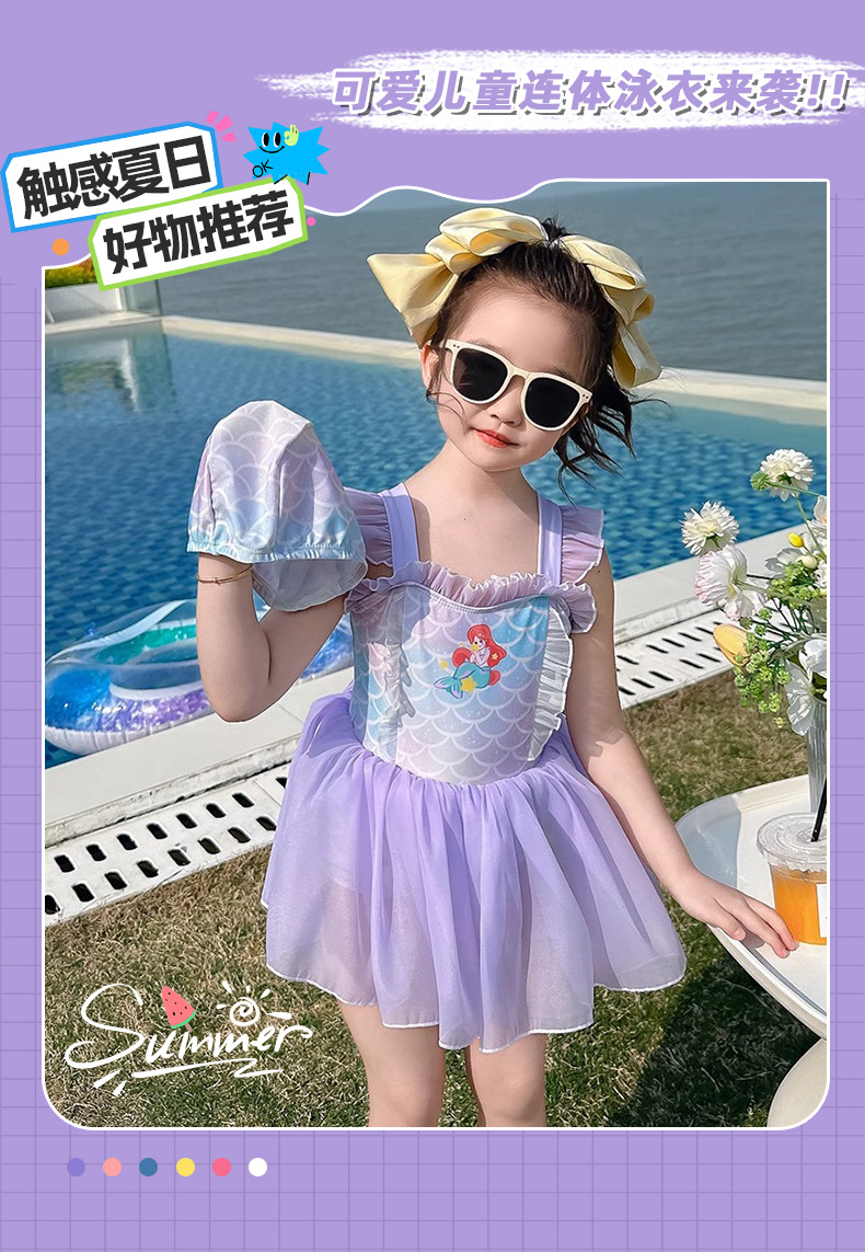 소녀 수영복 여름 2025 새로운 귀여운 소녀 아기 선 스크린 인어 얇은 공주 거즈 빠른 건조스토어 가기