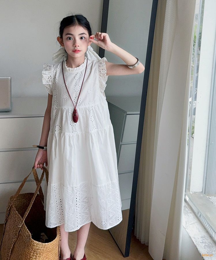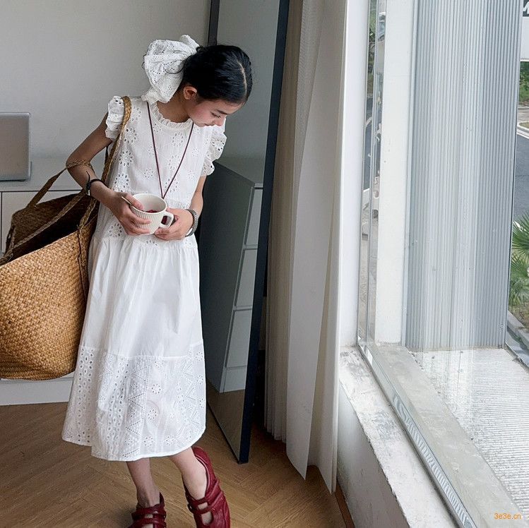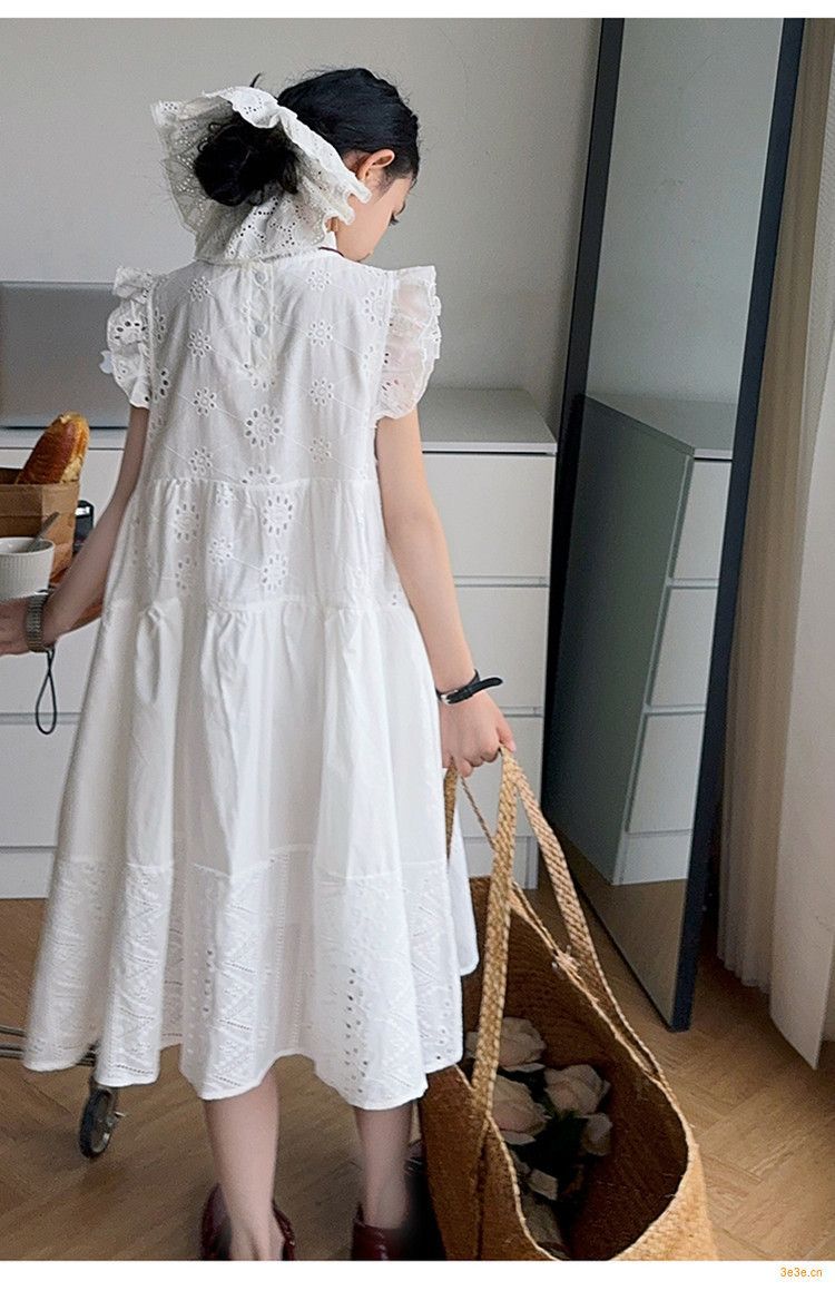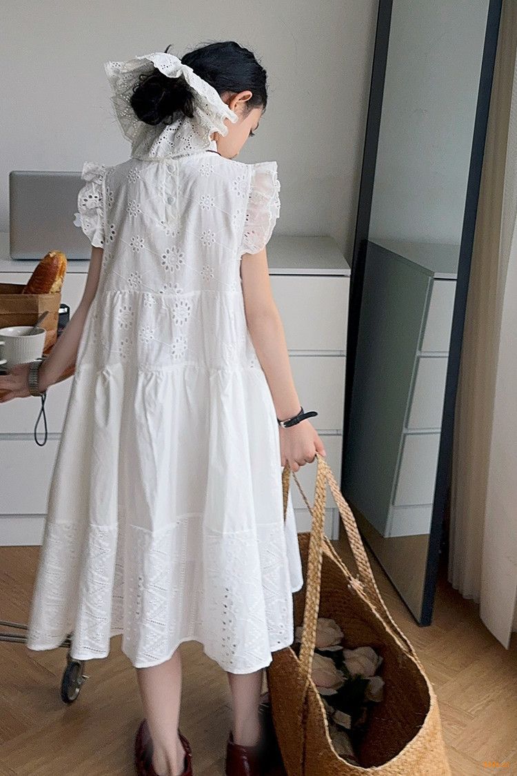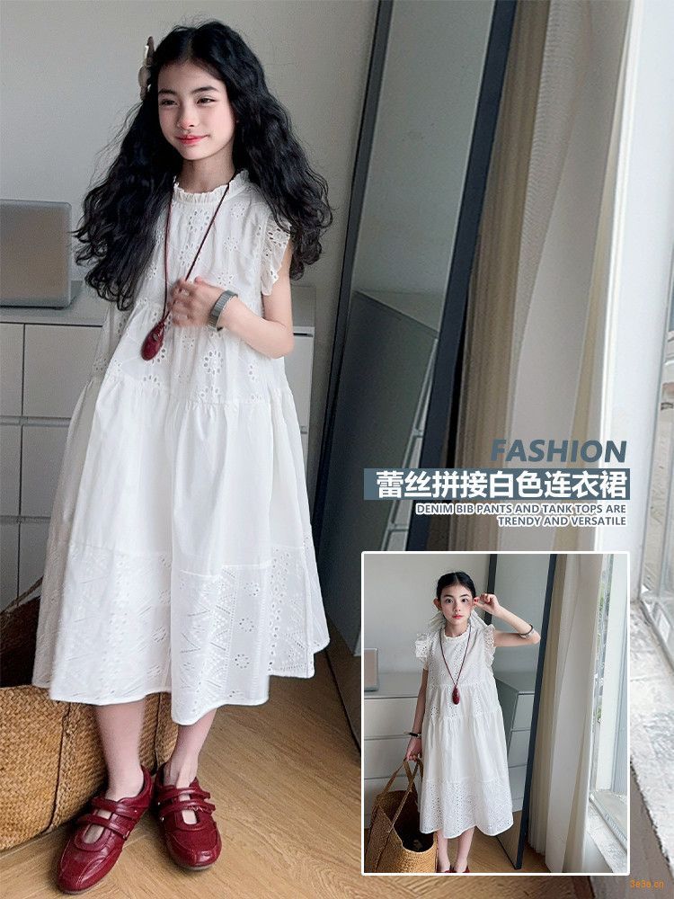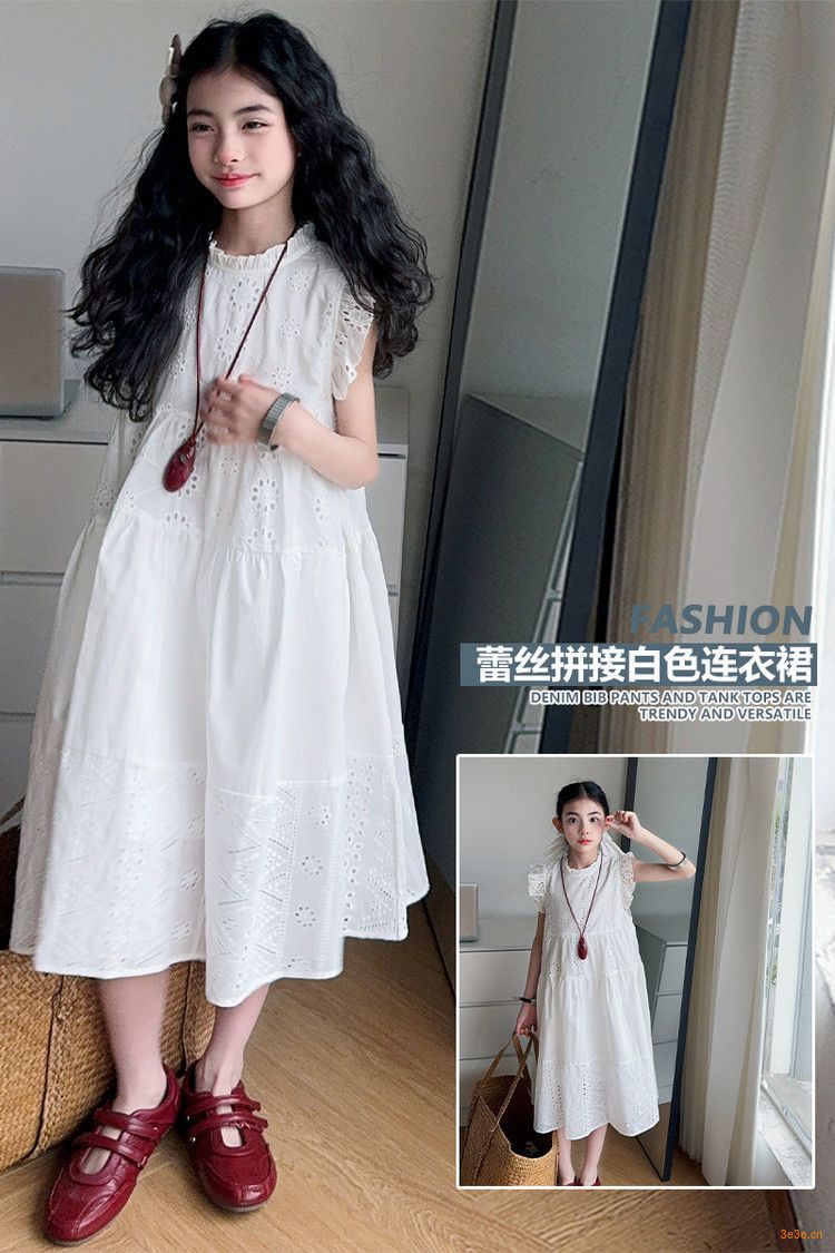 여자 여름 원피스 2025 새로운 패션 작은 파리 소매 레이스 스티칭 흰색 원피스스토어 가기