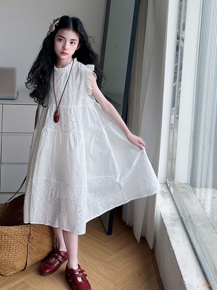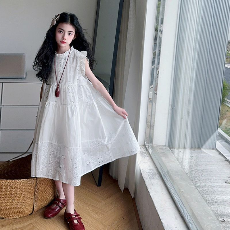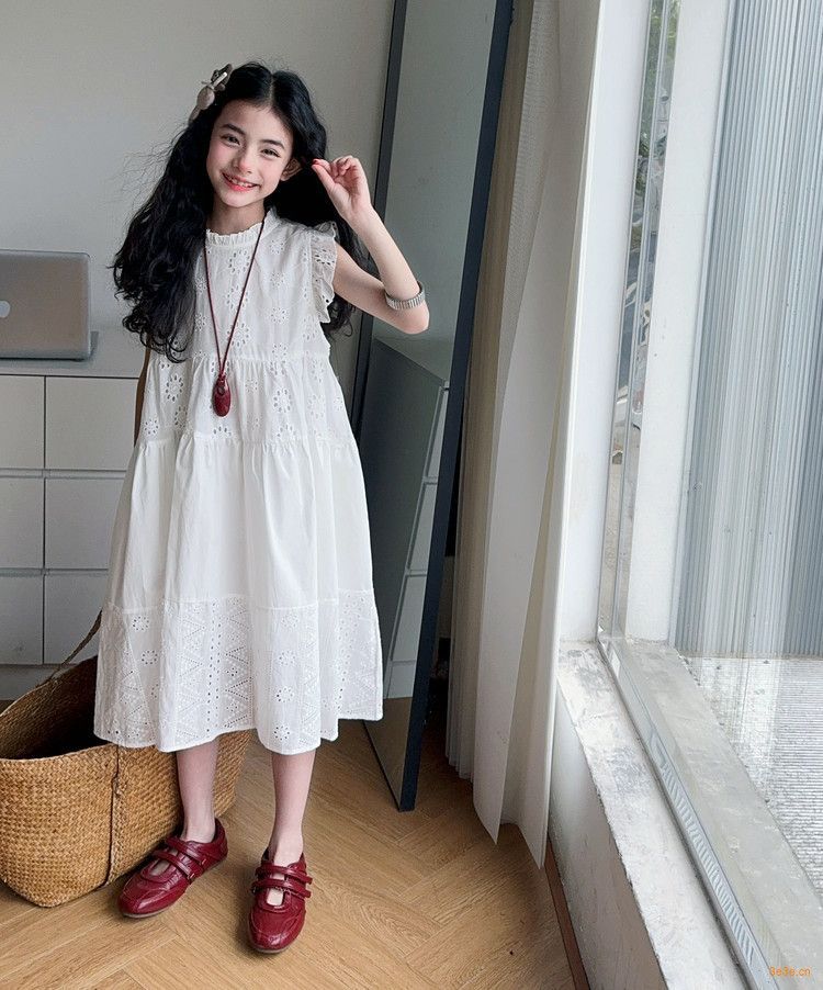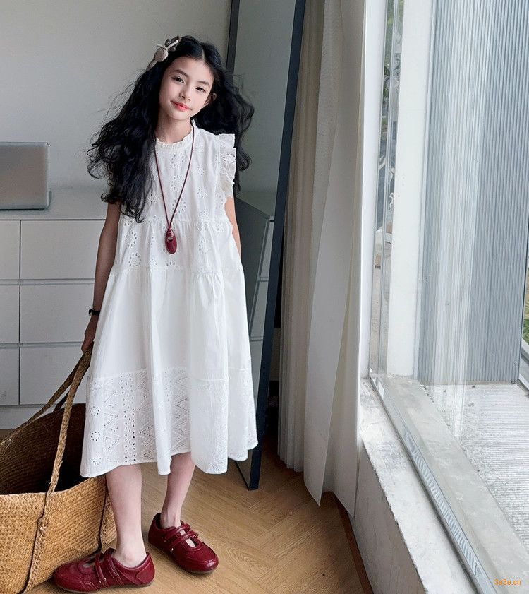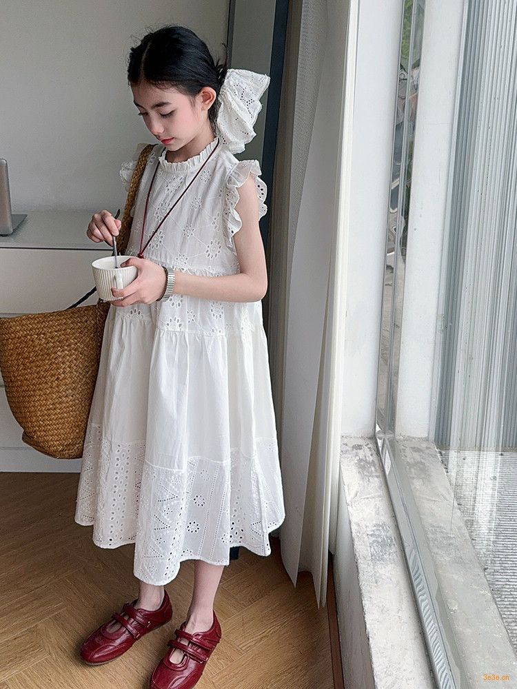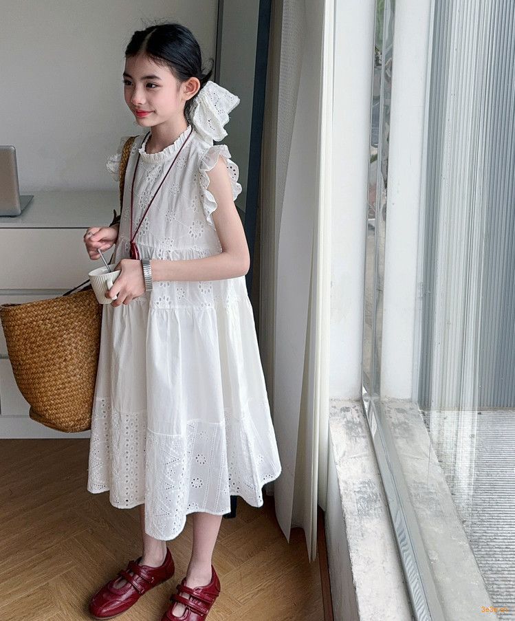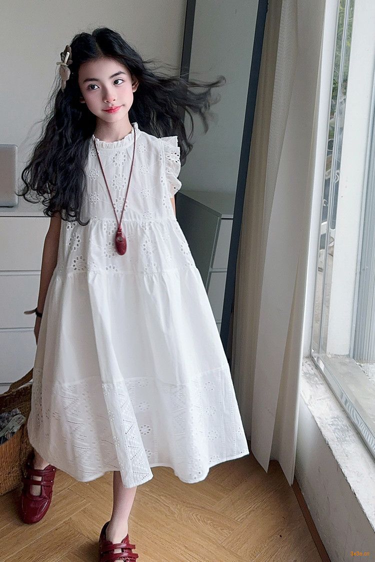 여자 여름 원피스 2025 새로운 패션 작은 파리 소매 레이스 스티칭 흰색 원피스스토어 가기