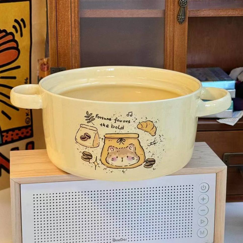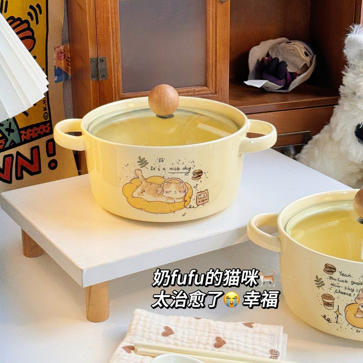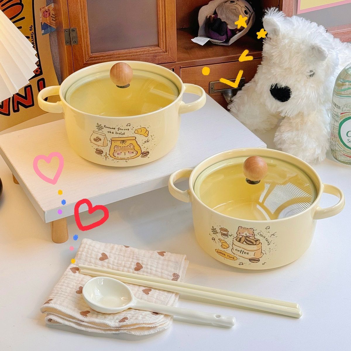 ins 고양이 컨트롤 인스턴트 국수 그릇 소녀 하트 학생 기숙사 인스턴트 국수 그릇 뚜껑이 있는 고급스러운 세라믹 전자레인지 사용 가능스토어 가기