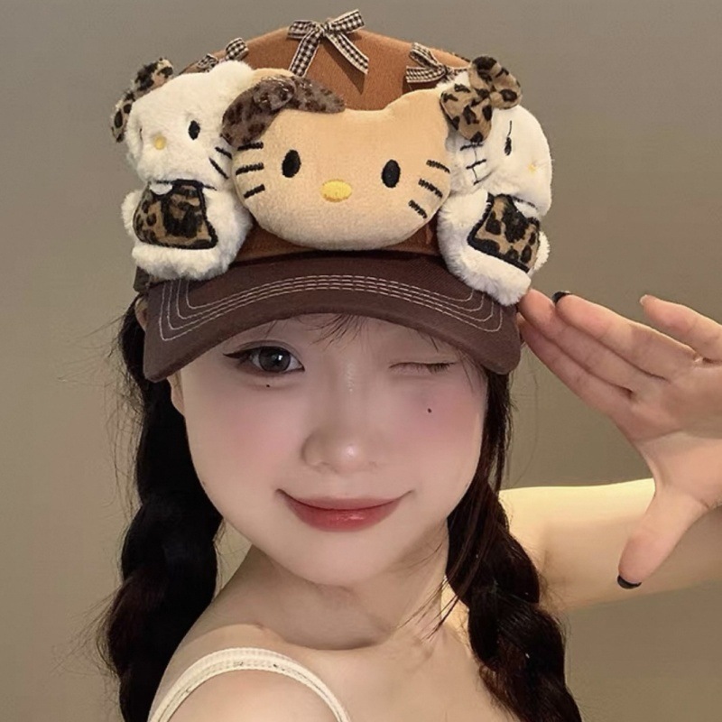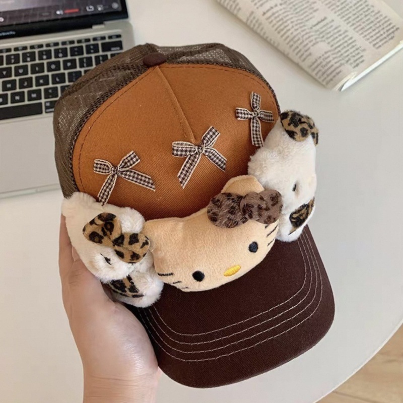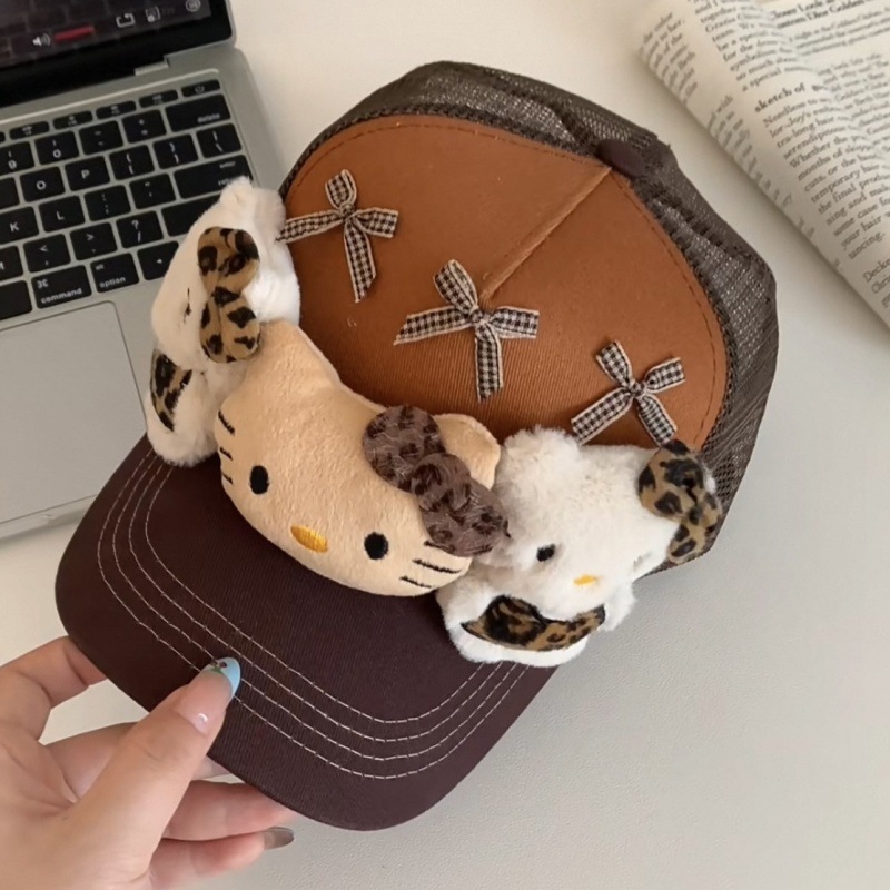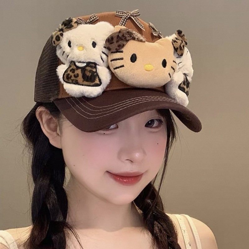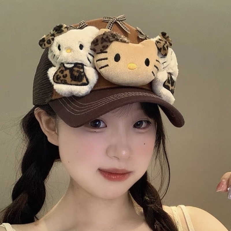 레오파드 무늬 헬로 키티 인형 야구 모자 봄과 여름 그리드 캡 만화 kt 고양이 피크 캡 통기성 y2k 핫 걸스토어 가기