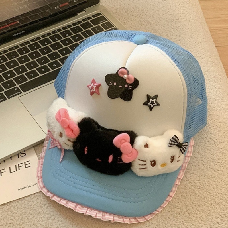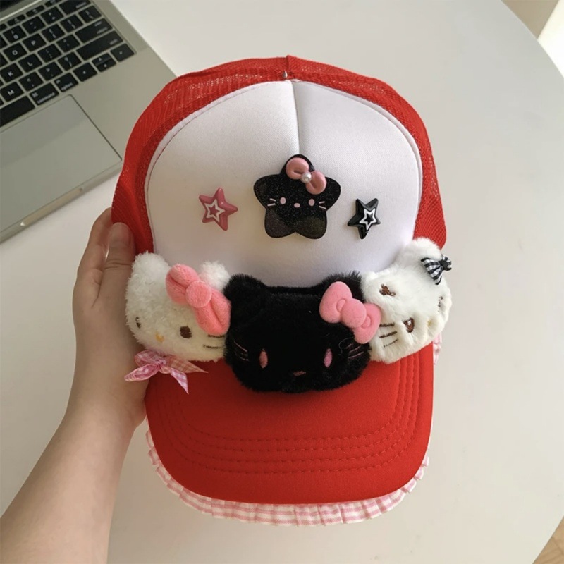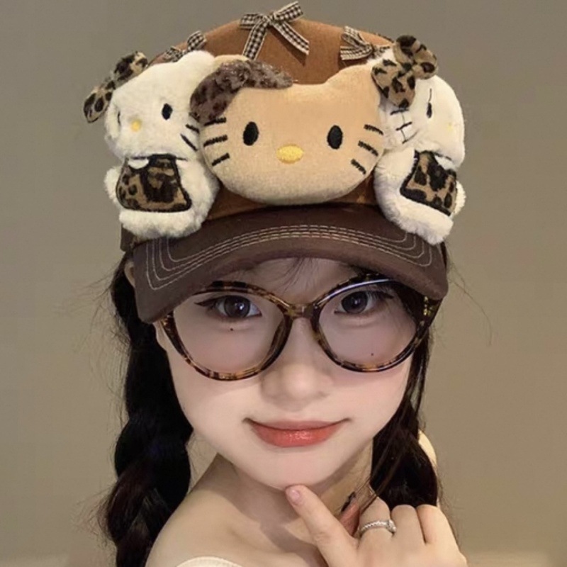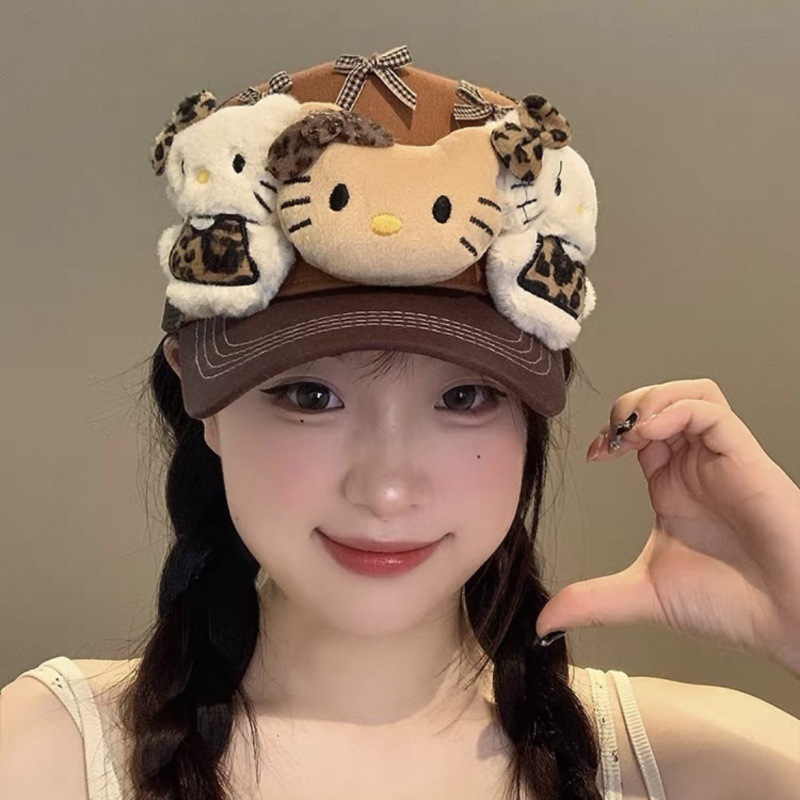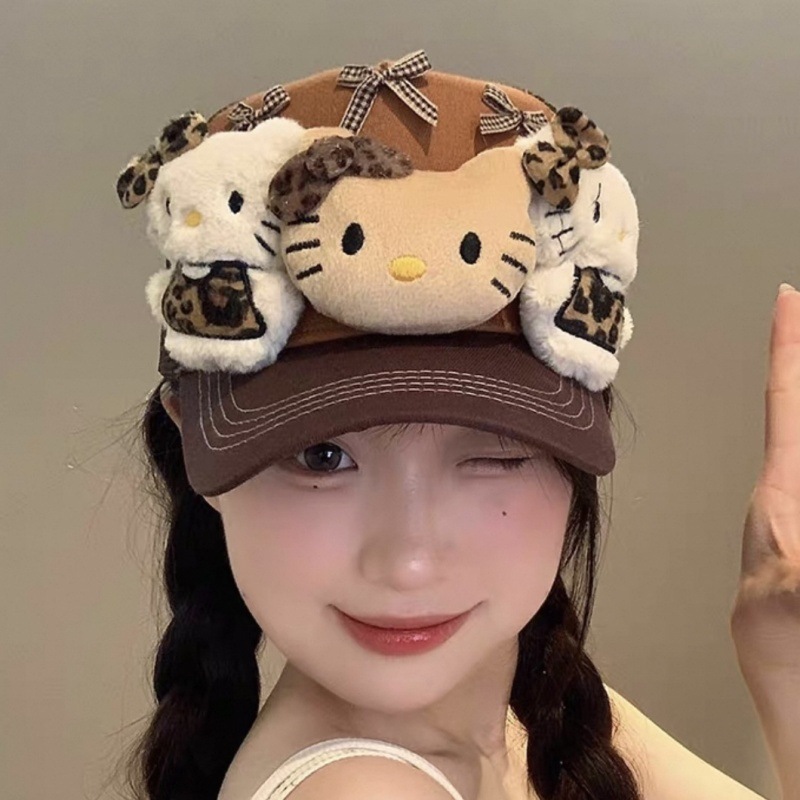 레오파드 무늬 헬로 키티 인형 야구 모자 봄과 여름 그리드 캡 만화 kt 고양이 피크 캡 통기성 y2k 핫 걸스토어 가기