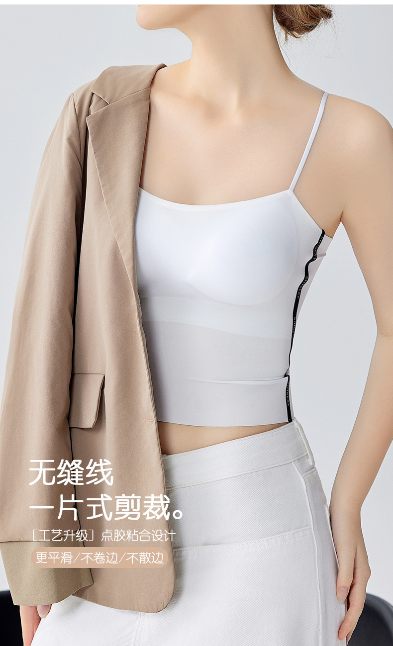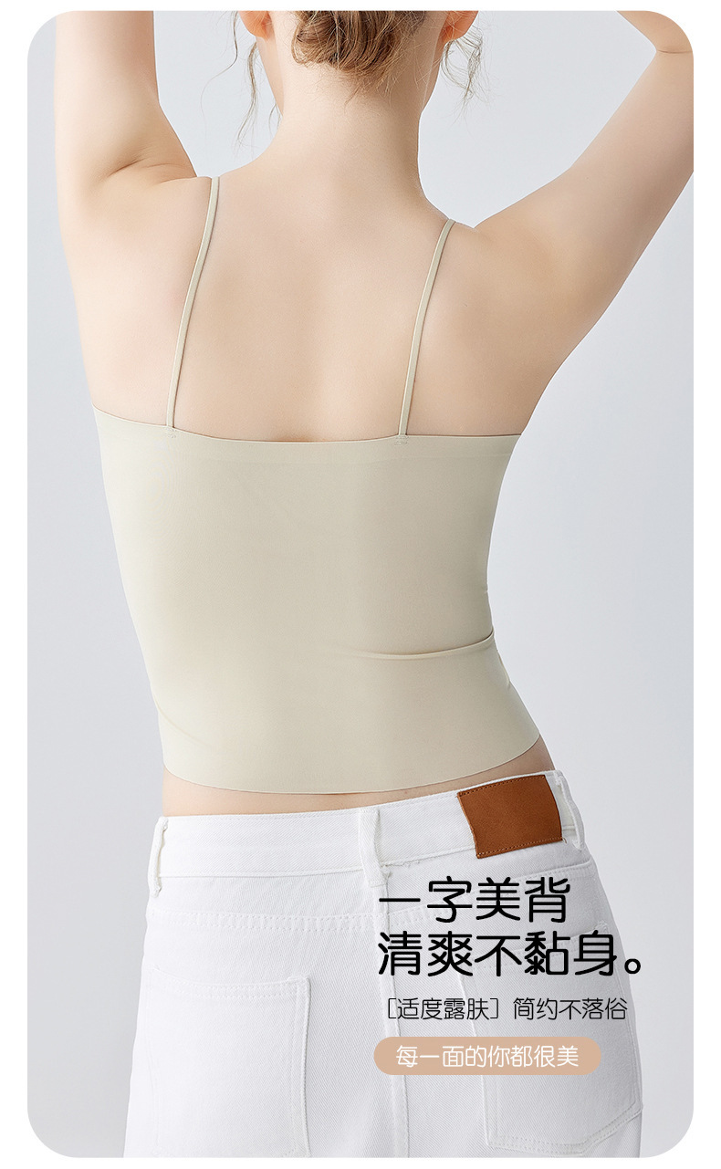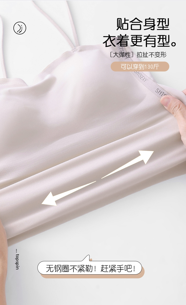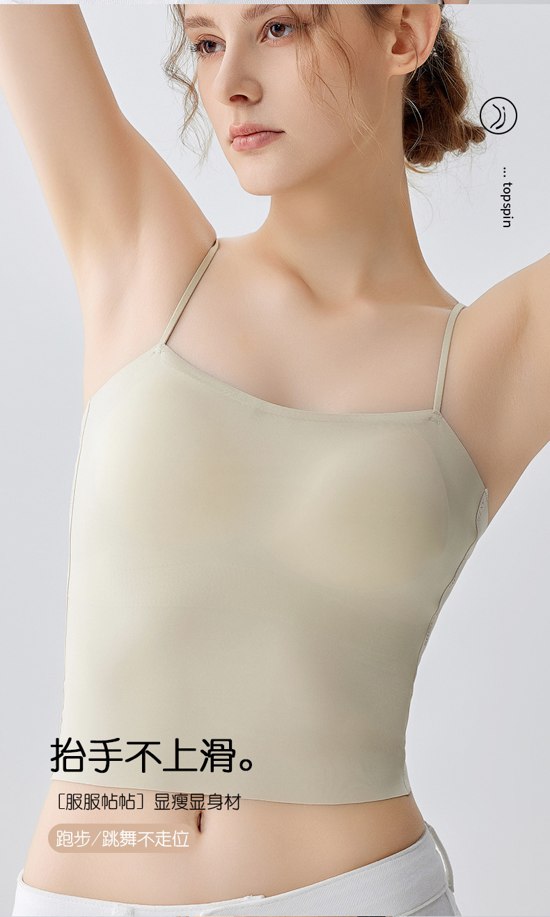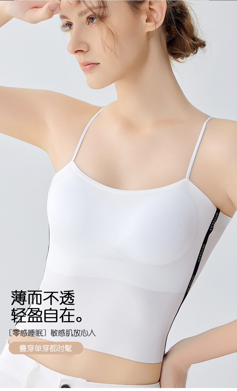 여름 얇은 아름다운 뒤 얼음 실크 카미 솔 조끼 여자 고정 컵 내부 베이스 안티 러닝 라이트 리프팅 튜브 탑 속옷스토어 가기