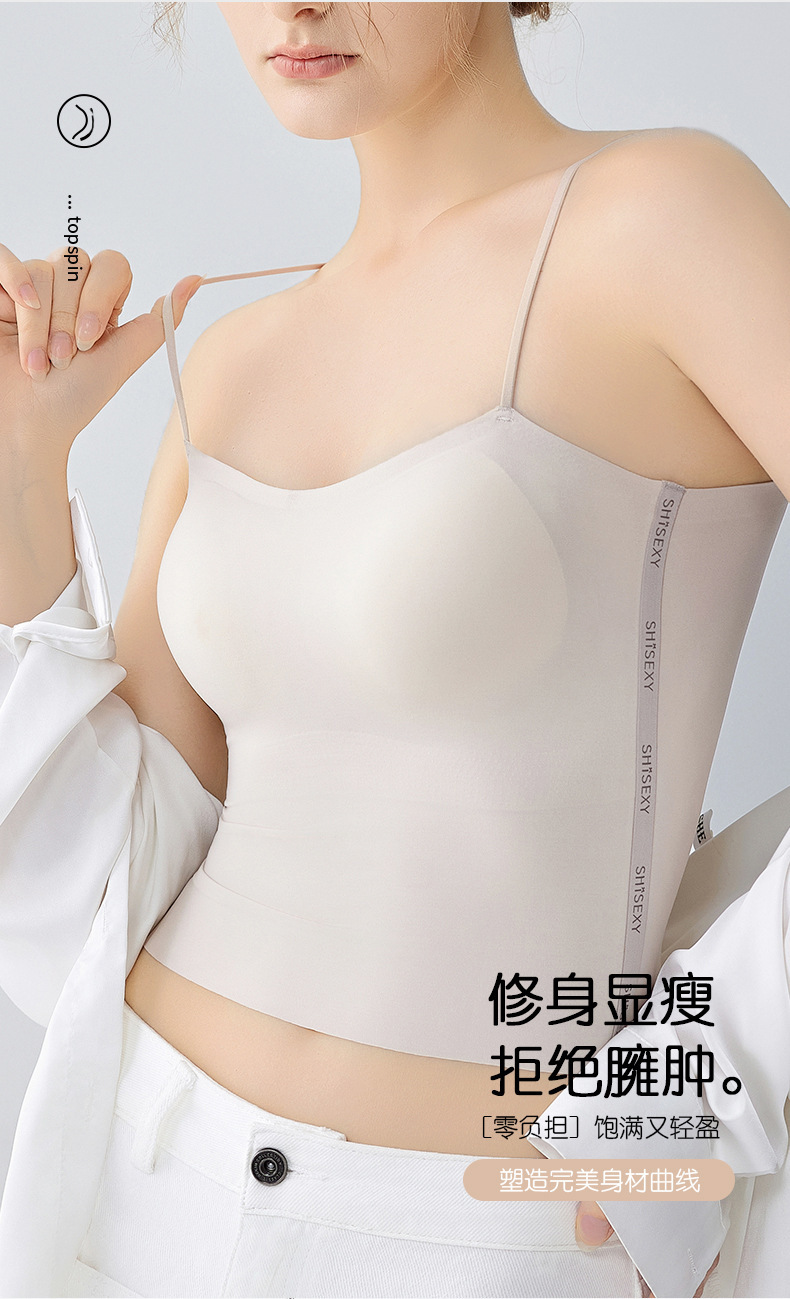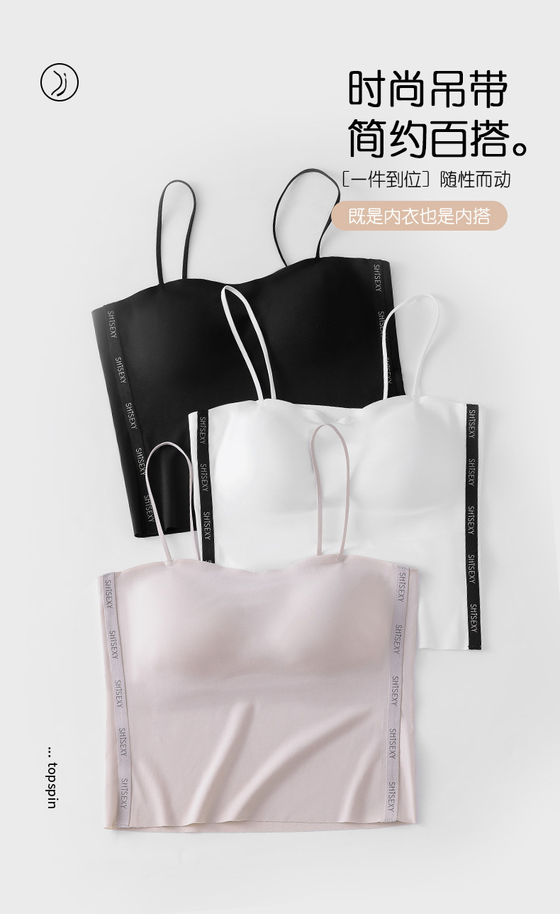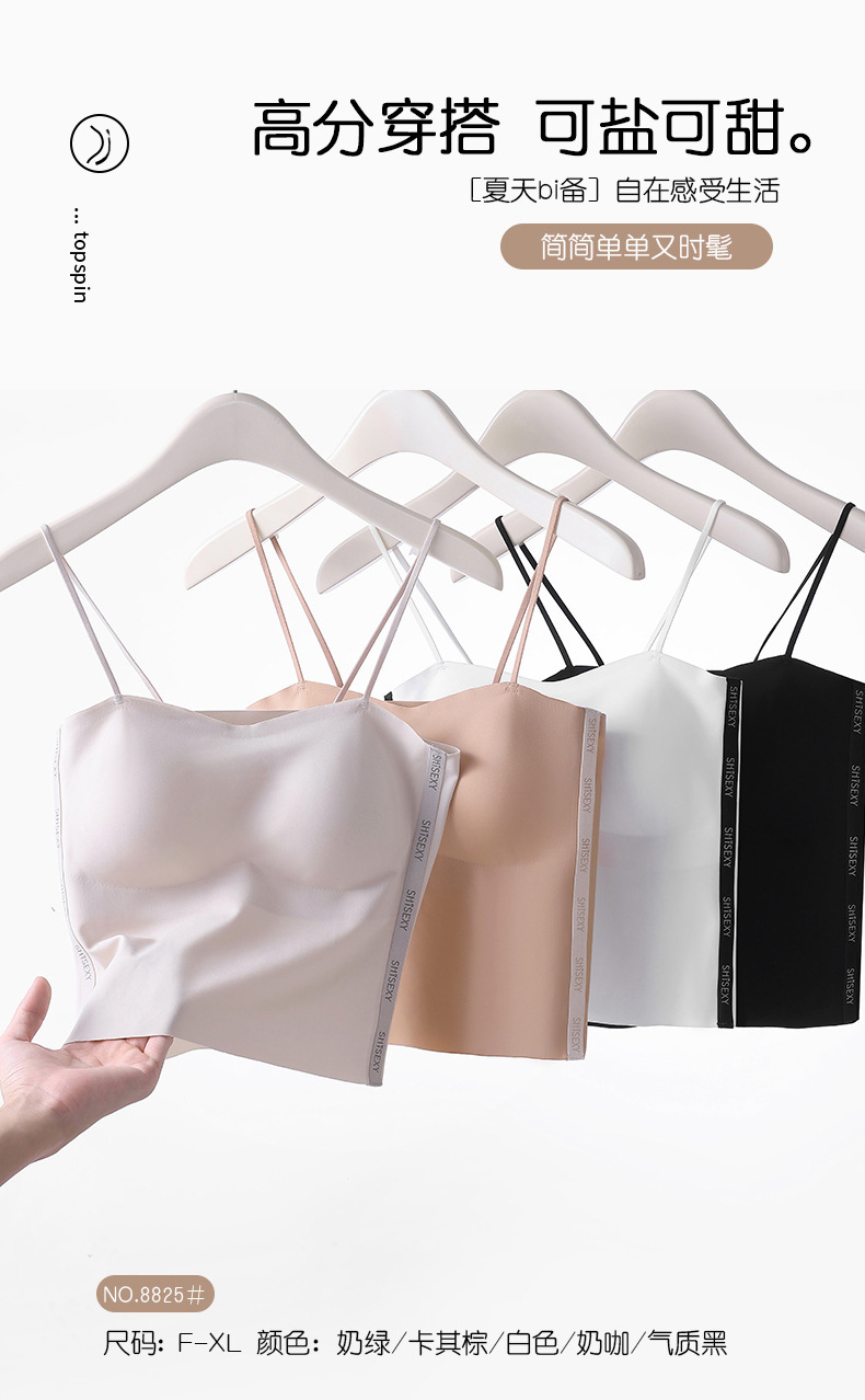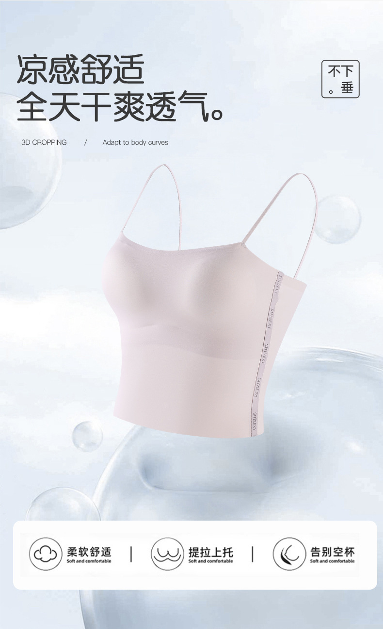 여름 얇은 아름다운 뒤 얼음 실크 카미 솔 조끼 여자 고정 컵 내부 베이스 안티 러닝 라이트 리프팅 튜브 탑 속옷스토어 가기