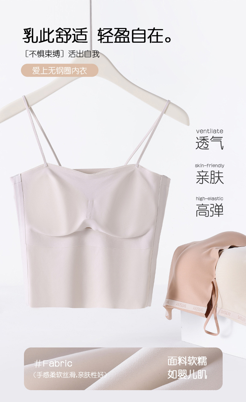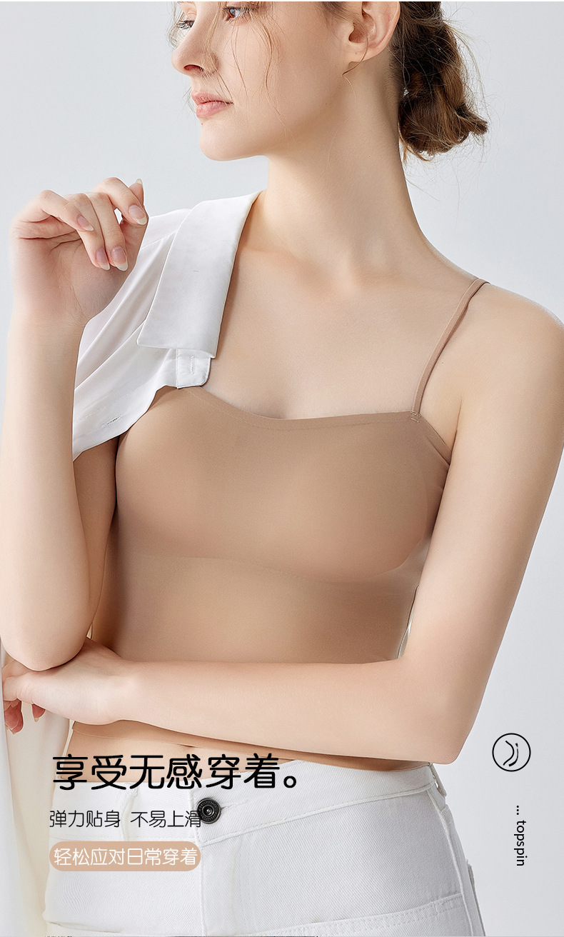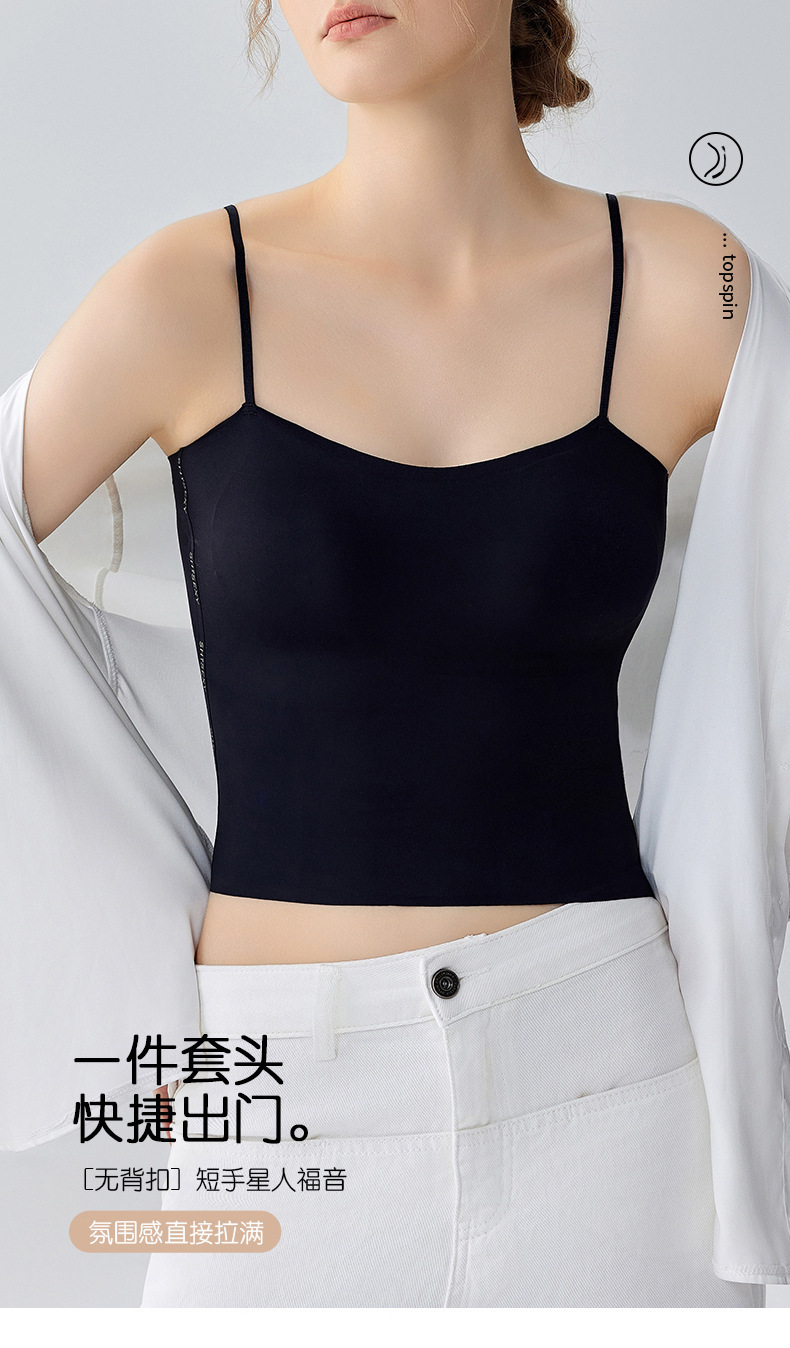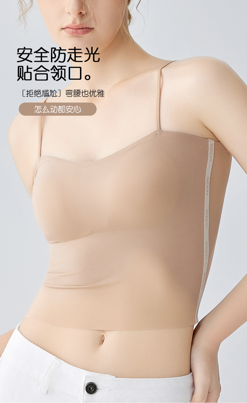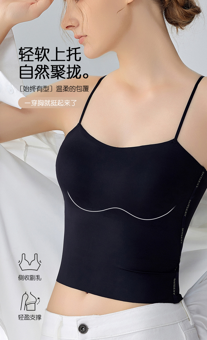 여름 얇은 아름다운 뒤 얼음 실크 카미 솔 조끼 여자 고정 컵 내부 베이스 안티 러닝 라이트 리프팅 튜브 탑 속옷스토어 가기