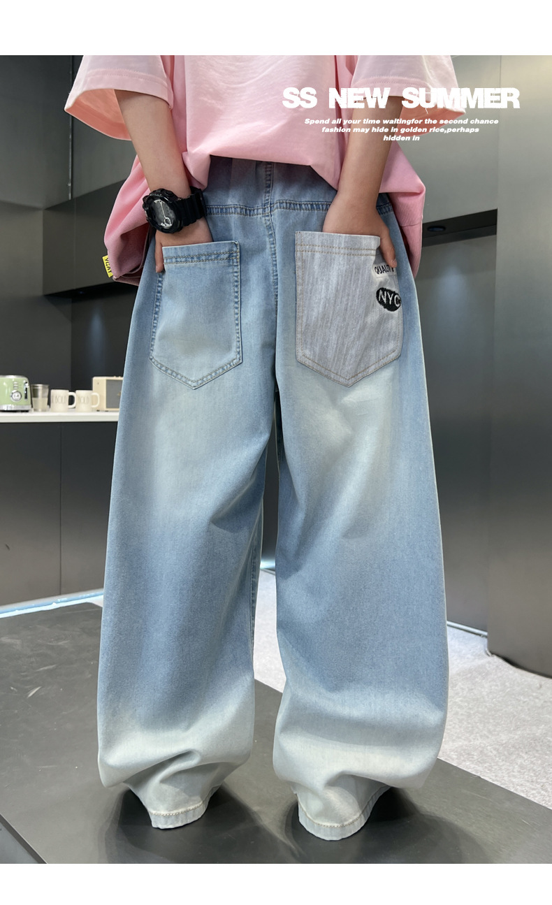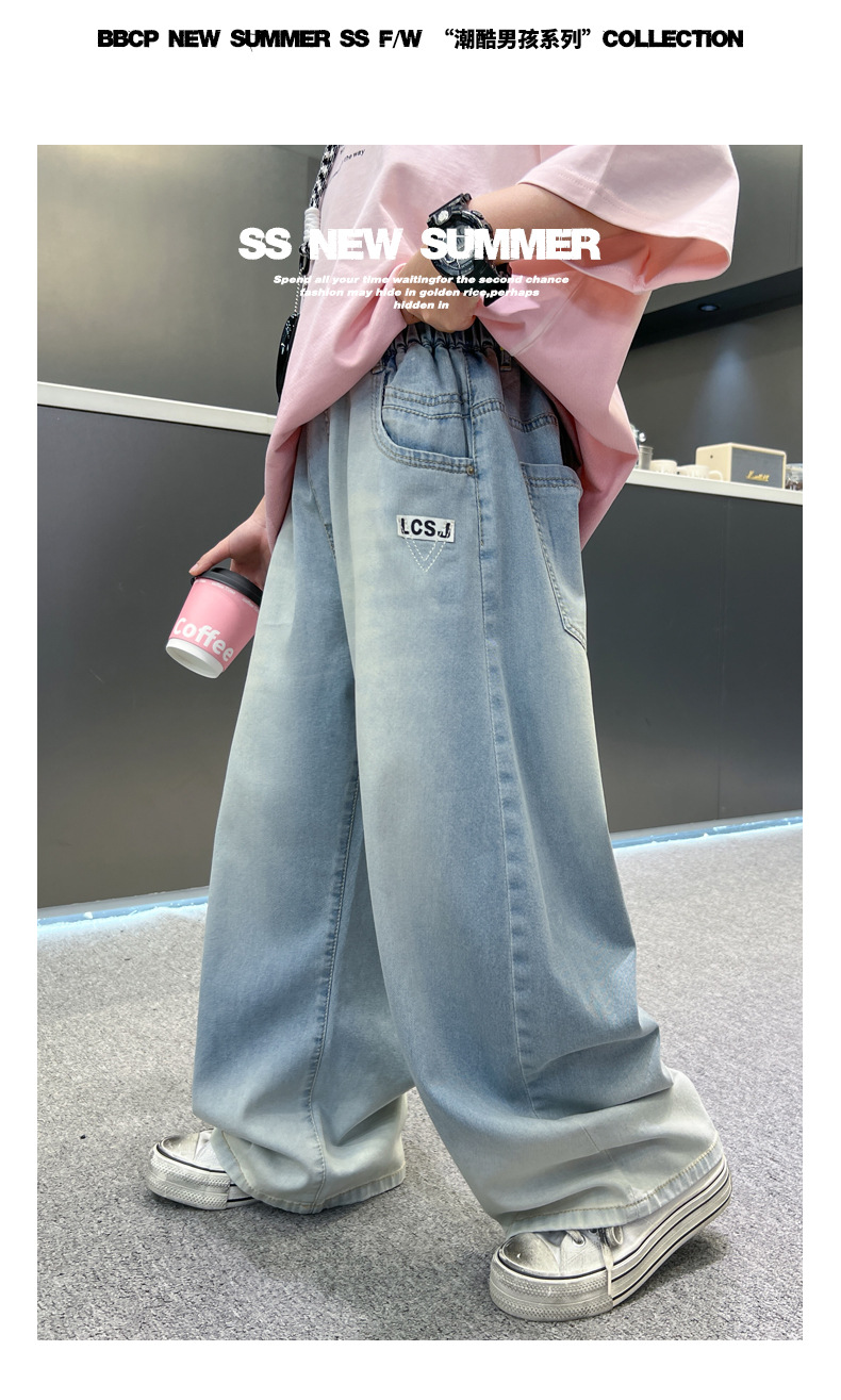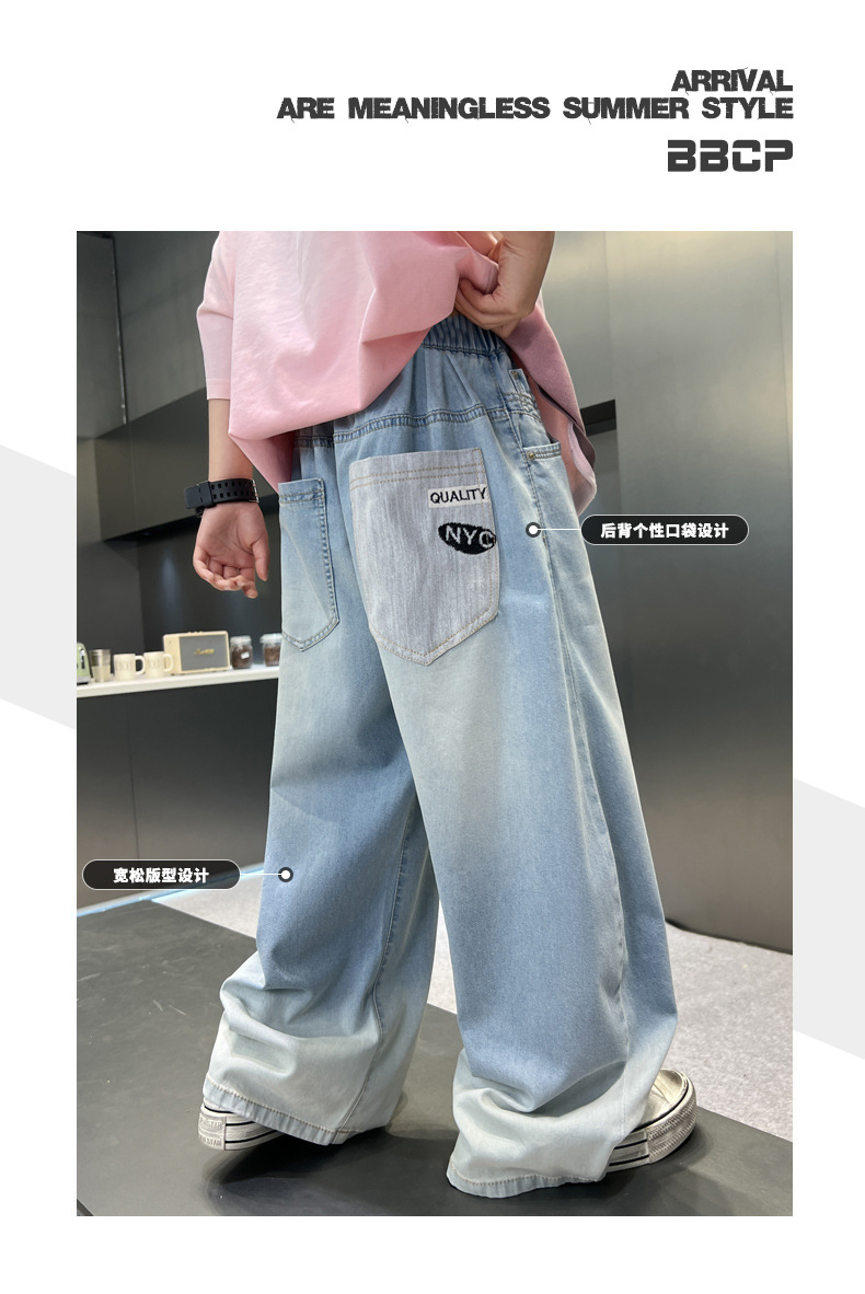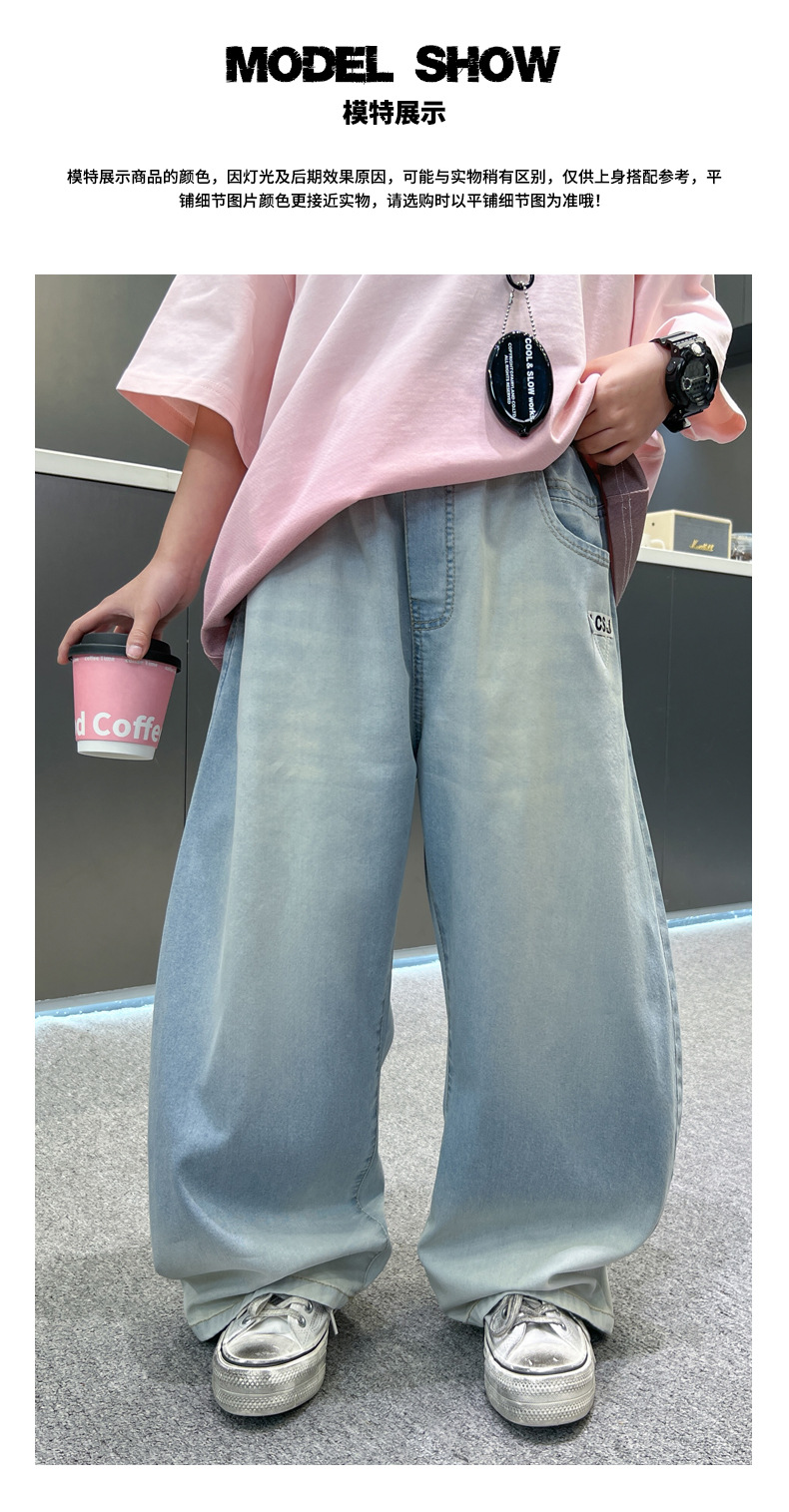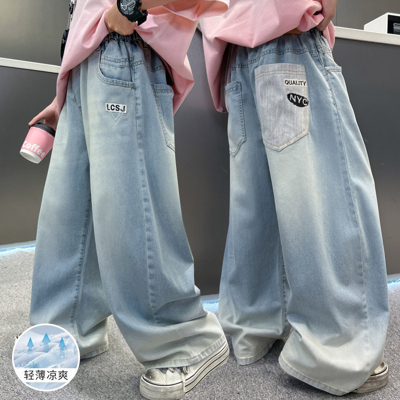 소년 바지 여름 얇은 느슨한 2025 새로운 어린이 여름 옷 텐셀 데님 모기 방지 바지 중대형 어린이 여름 스타일스토어 가기