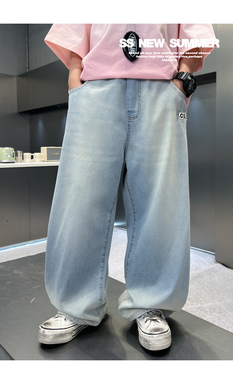 소년 바지 여름 얇은 느슨한 2025 새로운 어린이 여름 옷 텐셀 데님 모기 방지 바지 중대형 어린이 여름 스타일