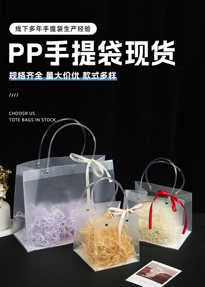 스팟 pp 투명 핸드백 젖빛 pvc 플라스틱 선물 가방 결혼식 선물 가방 로고로 일괄 사용자 정의스토어 가기
