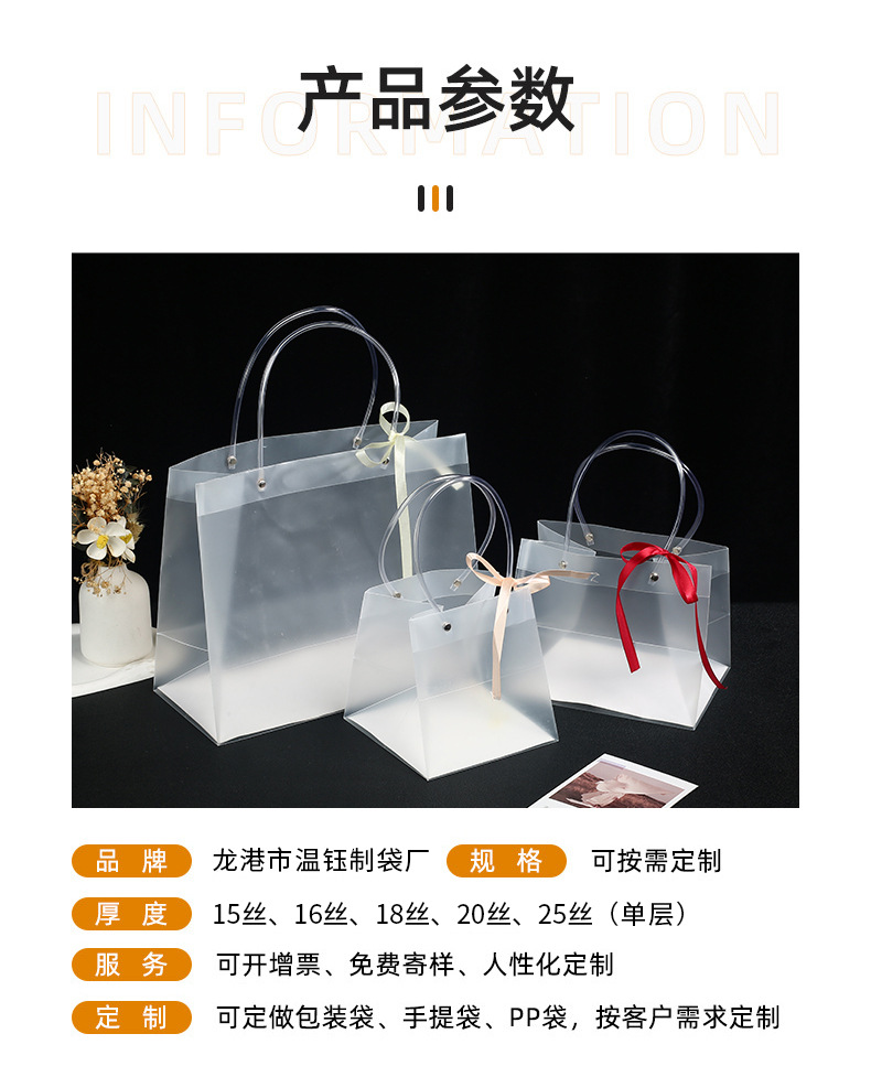 스팟 pp 투명 핸드백 젖빛 pvc 플라스틱 선물 가방 결혼식 선물 가방 로고로 일괄 사용자 정의