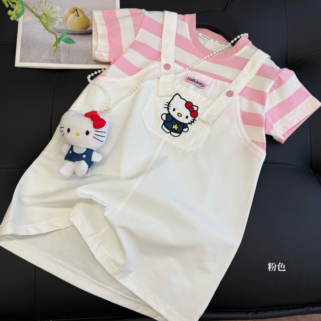 KT 고양이 드레스 여아 여름 드레스 세련된 어린이 가짜 투피스 서스펜더 스커트 여름 여아 모두 작은 액세서리가 함께 제공됩니다.