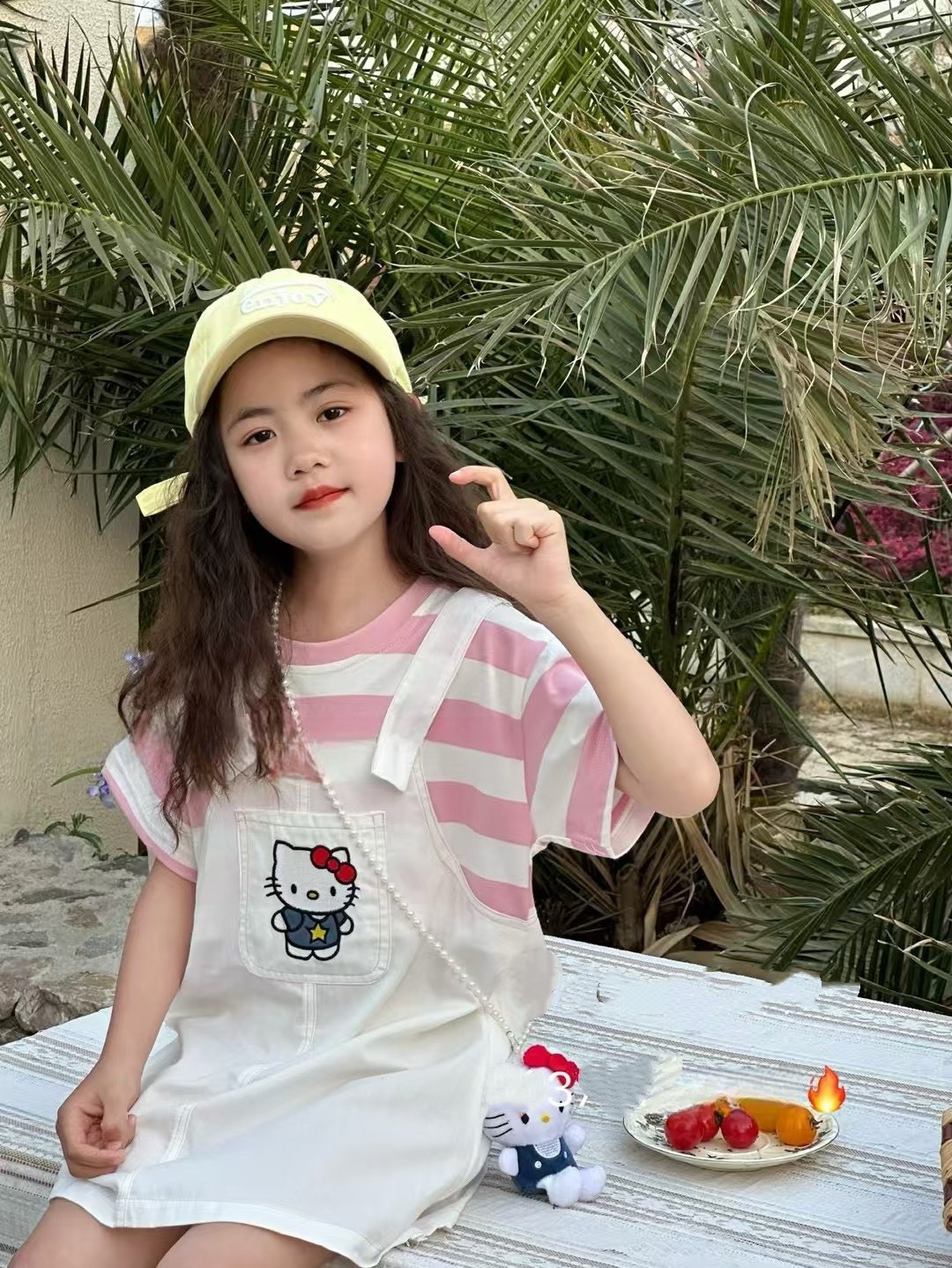 🔥重磅重磅,女儿们喜爱的kt猫连衣裙来喽,〖元气出街·三秒出门〗一件搭配不费妈,不纠结搞定夏日穿搭难题🔥110-160码刺绣Kitty猫口袋设计,✅每件衣服都赠送一个Kitty猫玩偶挂件!🧊让夏天充满甜滋滋的小确幸💕!!全部实拍,性价比高!!