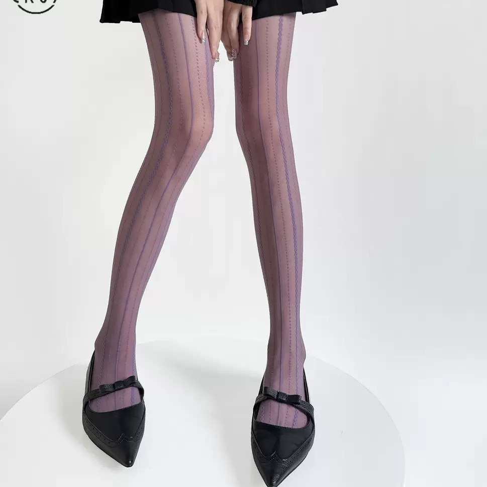 밀크 화이트 실크 스타킹 순수한 욕망 섹시한 안티 후크 실크 미끄러지지 않은 레이스 수직 스트립 패턴 레깅스 여성용 봄과 여름스토어 가기
