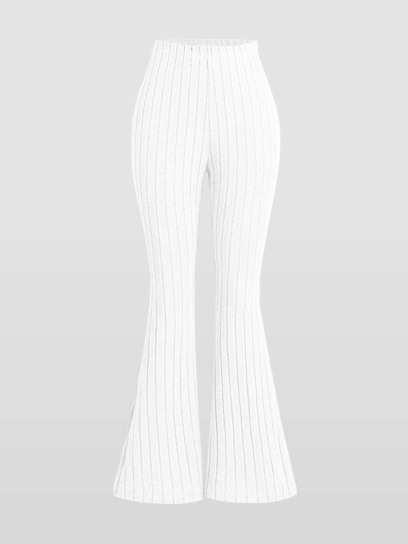 여자 솔리드 컬러 핏 스트립 슬림 캐주얼 플레어 바지 바지-탄성 허리띠 여성 십대 캐주얼 바지 여성 의류 바지스토어 가기