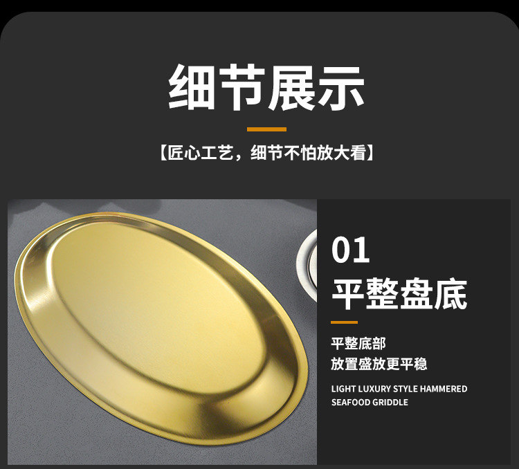 한국 스테인레스 스틸 달걀 모양의 접시 황금 타원형 평면 트레이 대형 생선 찜 접시 상업용 바베큐 접시스토어 가기