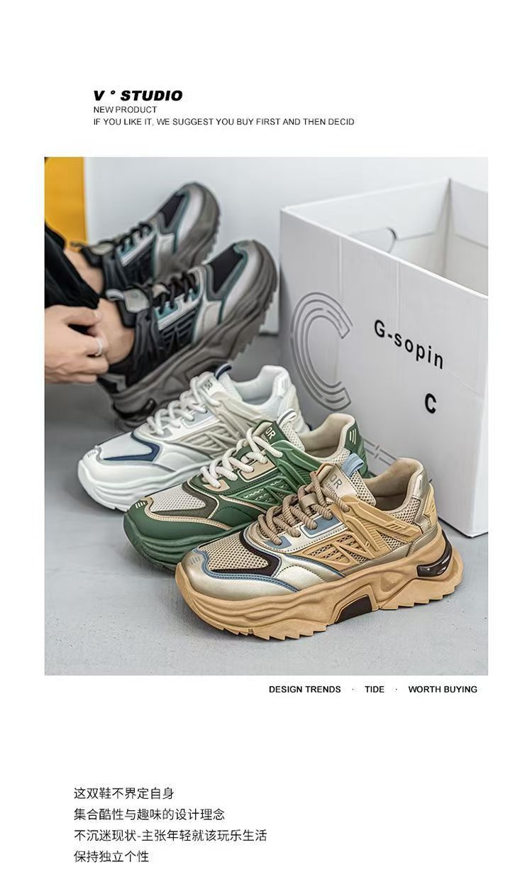 남성 신발 2025 새로운 봄과 여름 메쉬 신발 통기성 소프트 솔 스포츠 캐주얼 신발 10 대 증가 두꺼운 단독 토르 트렌디 신발스토어 가기