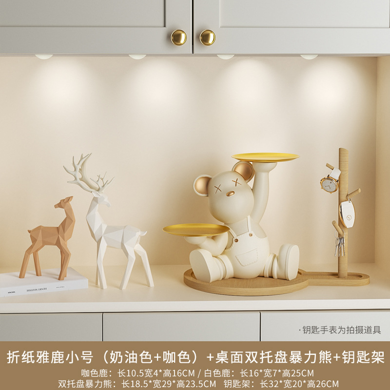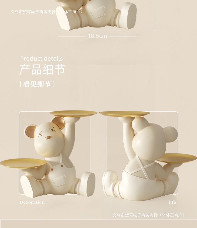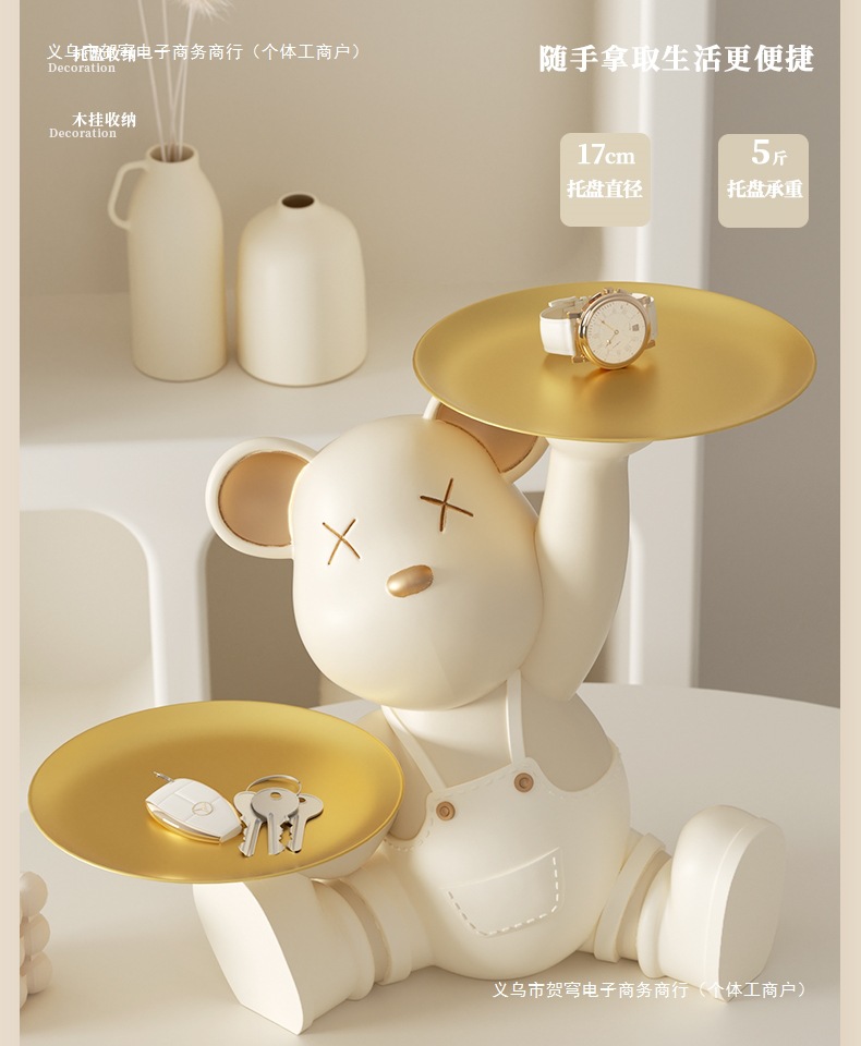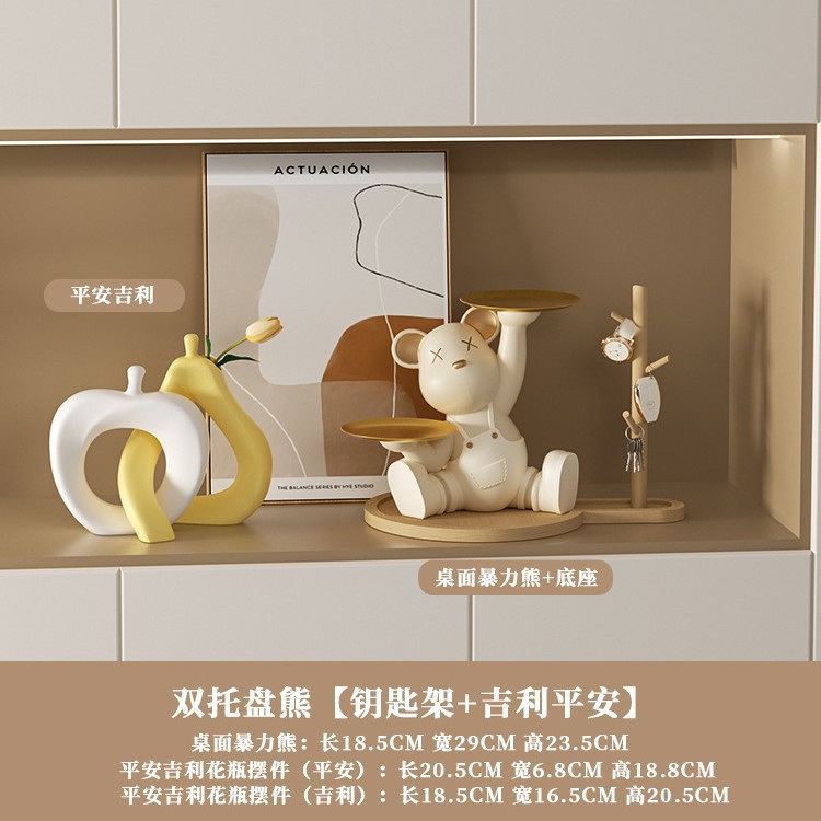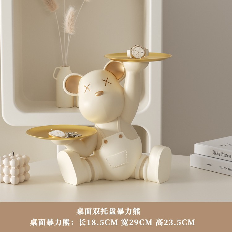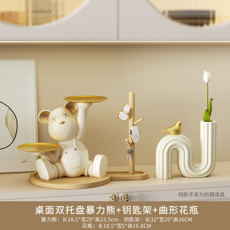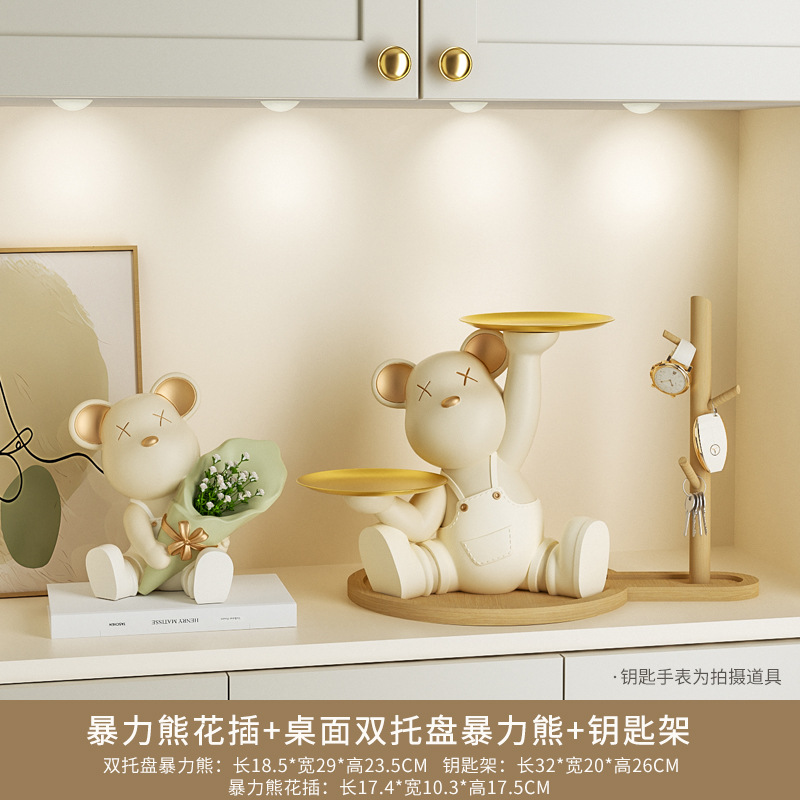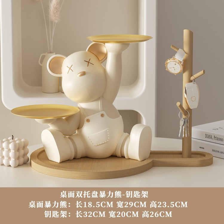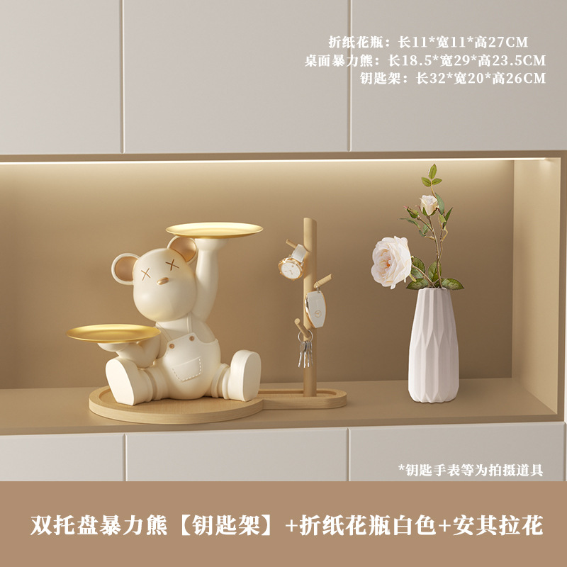 폭력적인 곰 열쇠 보관 현관 장식품 거실 입구 문 장식 크림 스타일 트레이 새 집으로 이사 집들이 선물