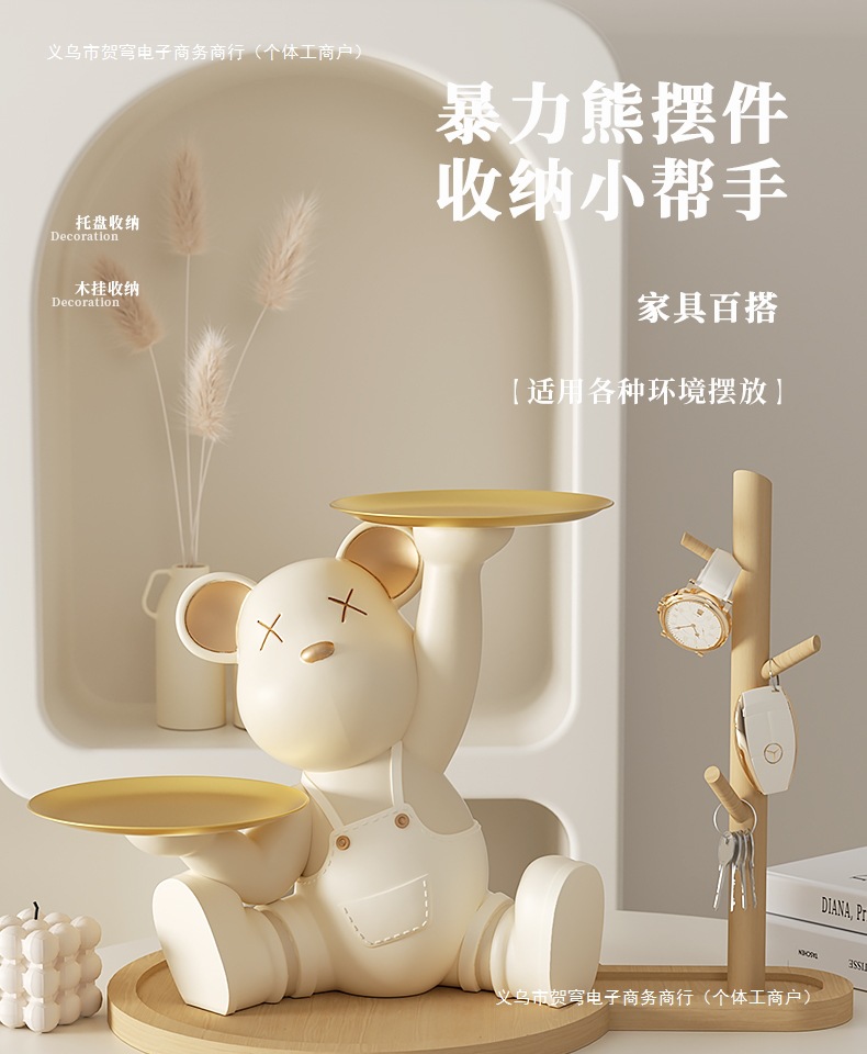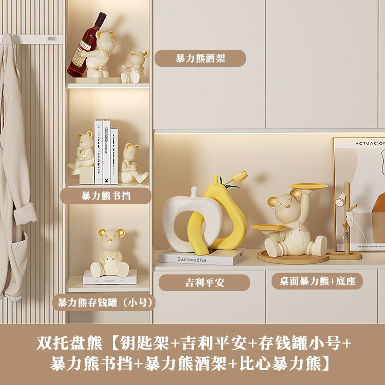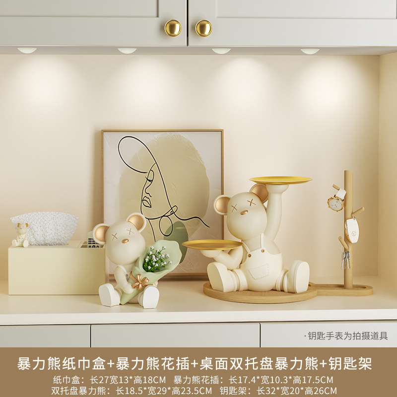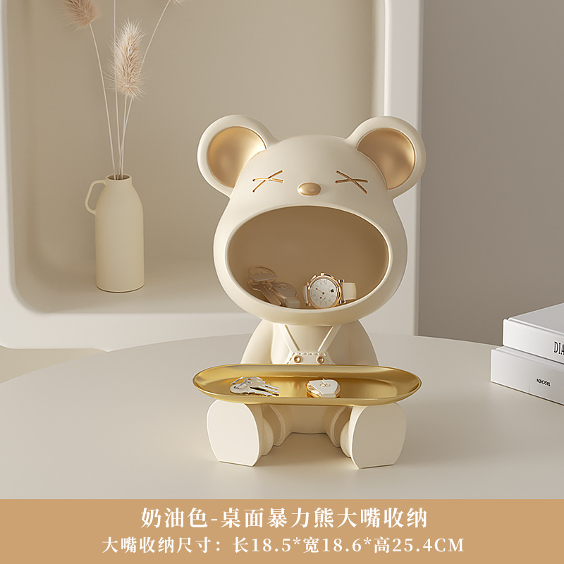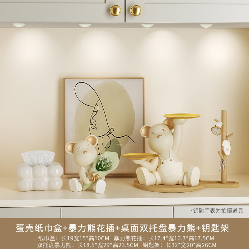 폭력적인 곰 열쇠 보관 현관 장식품 거실 입구 문 장식 크림 스타일 트레이 새 집으로 이사 집들이 선물스토어 가기
