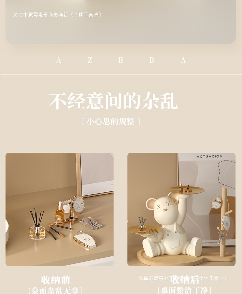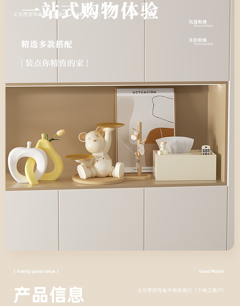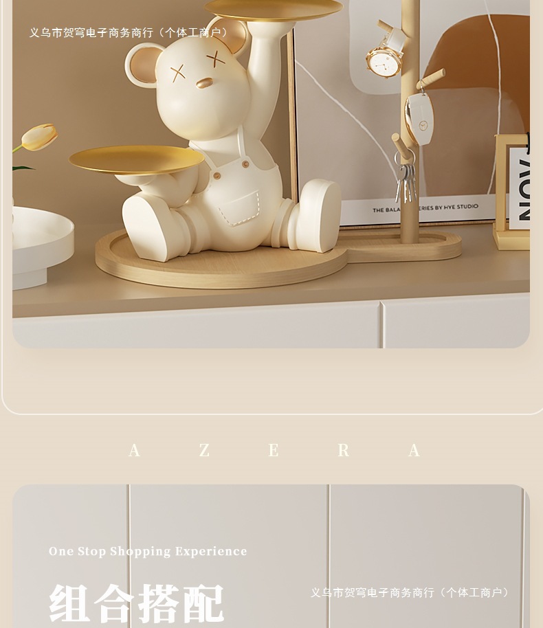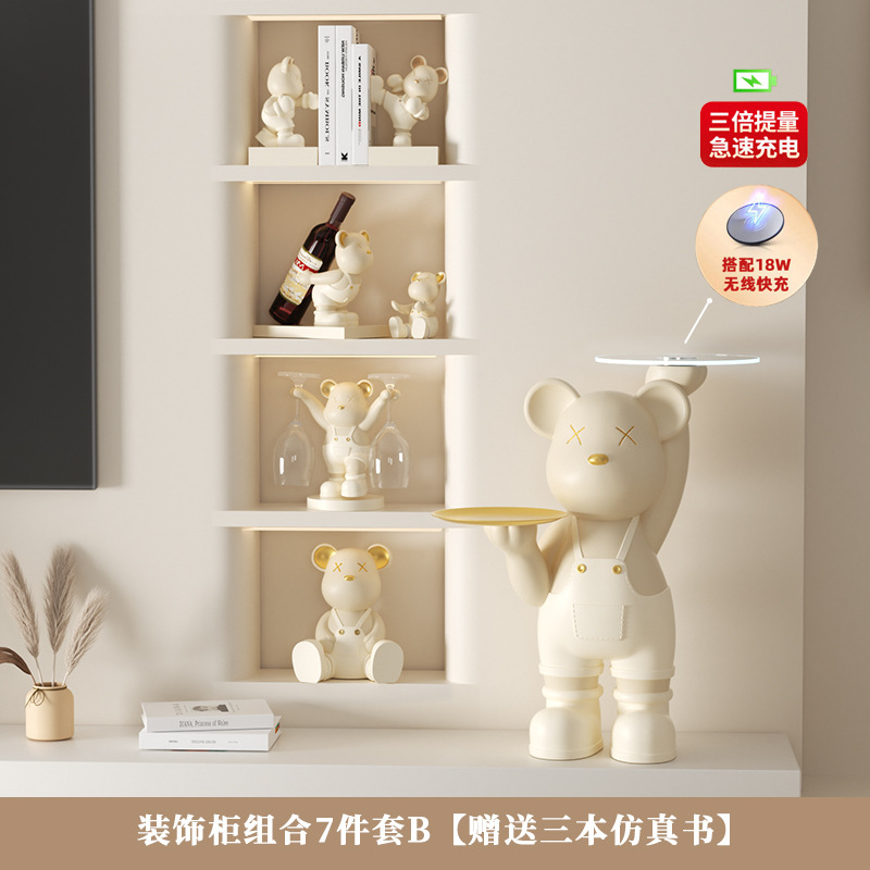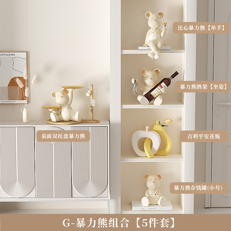 폭력적인 곰 열쇠 보관 현관 장식품 거실 입구 문 장식 크림 스타일 트레이 새 집으로 이사 집들이 선물스토어 가기