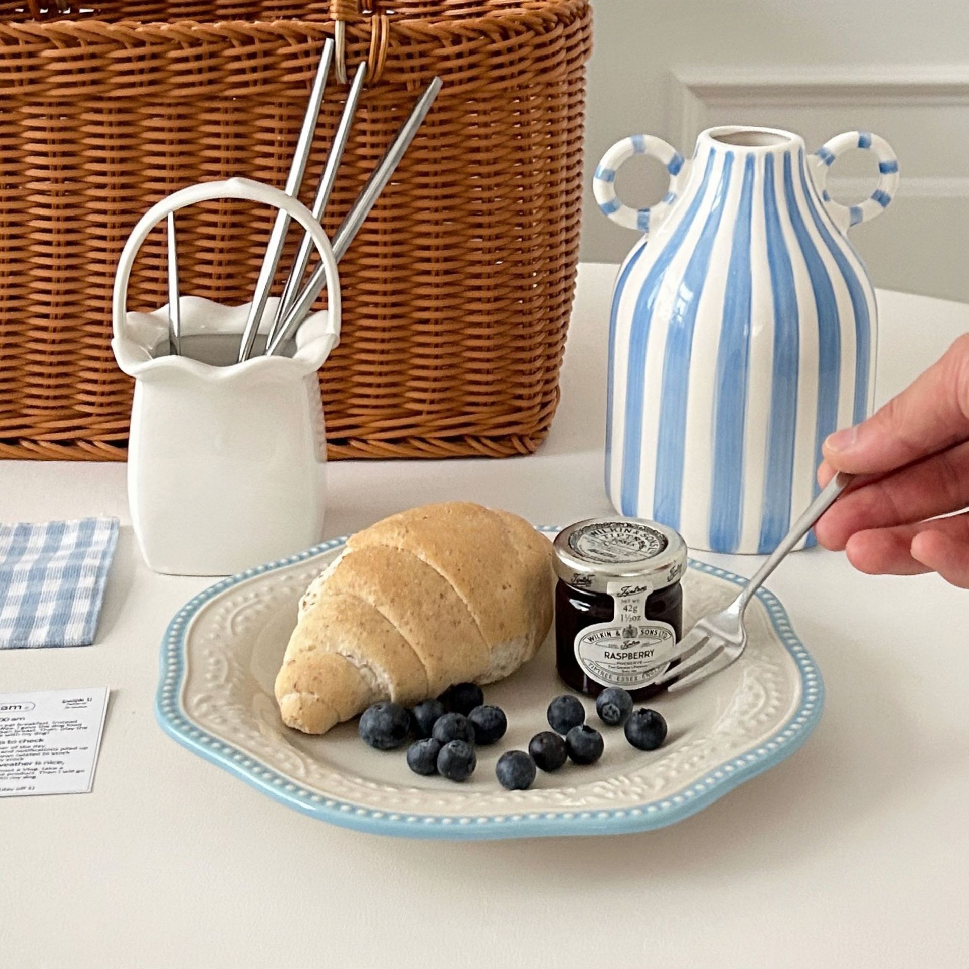 Ins 스타일 프랑스 복고풍 레이스 양각 디너 플레이트 세라믹 식기 북유럽 서양 디너 플레이트 디저트 플레이트 홈 아침 식사 플레이트스토어 가기