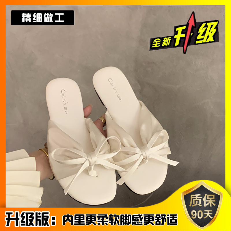 여성을위한 프랑스 스타일 플랫 샌들 2025 여름 새로운 요정 스타일 보우 슬리퍼 스커트와 샌들