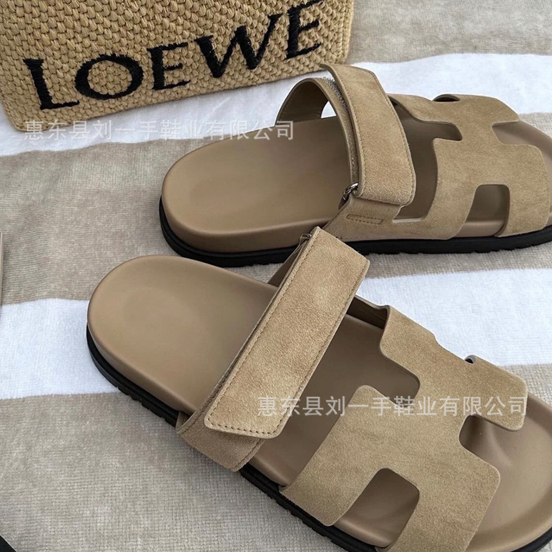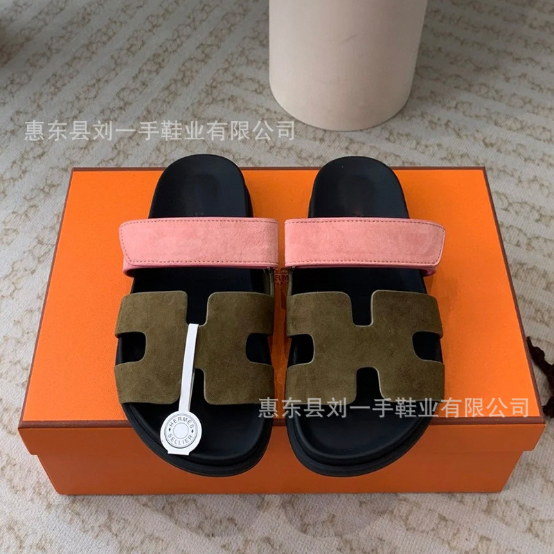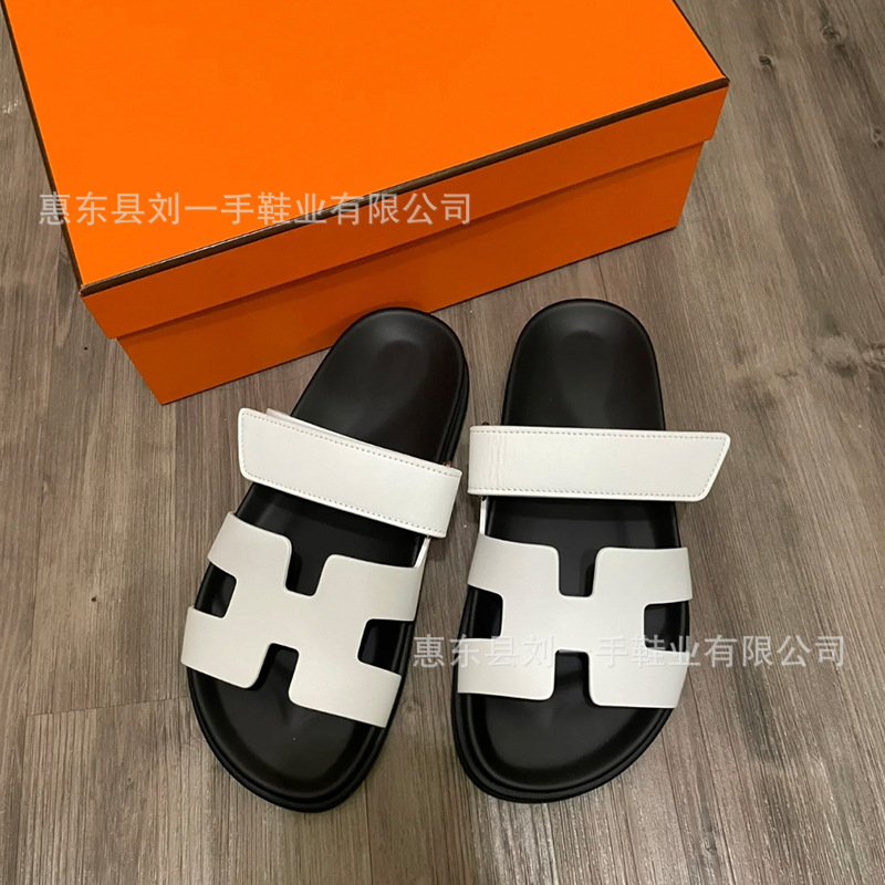 하이 버전 엄격 선택 두 번째 아저씨 H 슬리퍼 여성 여름 외부 정품 가죽 두꺼운 하단 벨크로 플랫 여성용 샌들 신발스토어 가기
