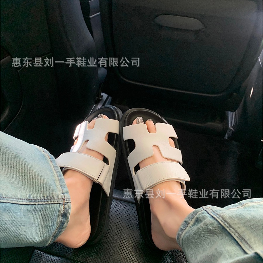 하이 버전 엄격 선택 두 번째 아저씨 H 슬리퍼 여성 여름 외부 정품 가죽 두꺼운 하단 벨크로 플랫 여성용 샌들 신발
