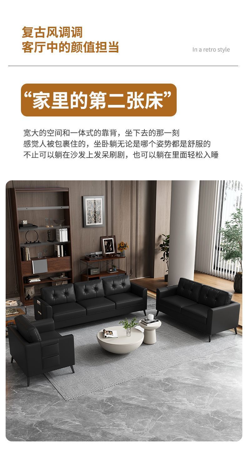 아파트 소파 작은 아파트 임대 방 거실 이발소 체스 룸 휴식 리셉션 블랙 가죽 더블 소파스토어 가기